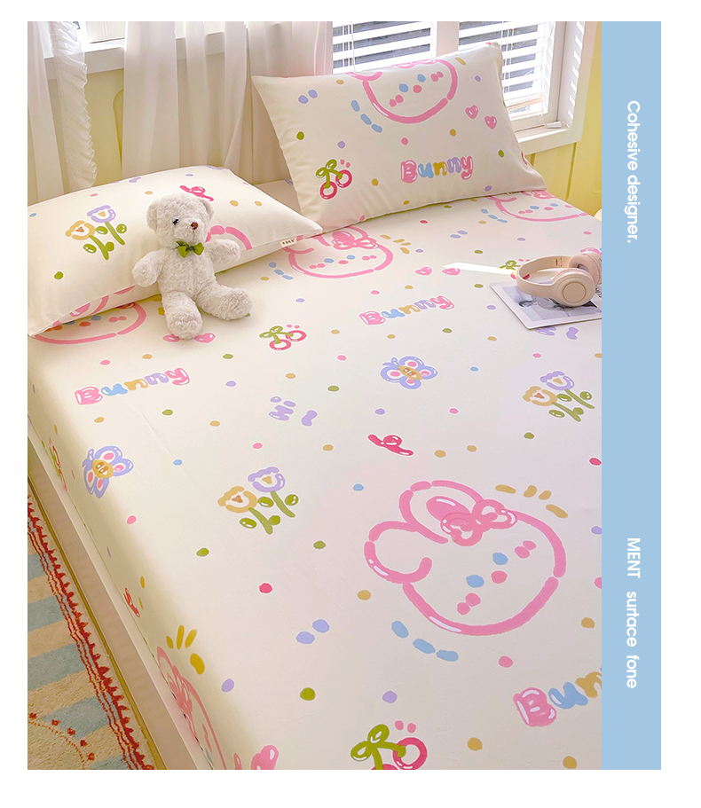金鑫汇家纺 2026新款全棉老粗布单品床笠系列 奇趣小兔