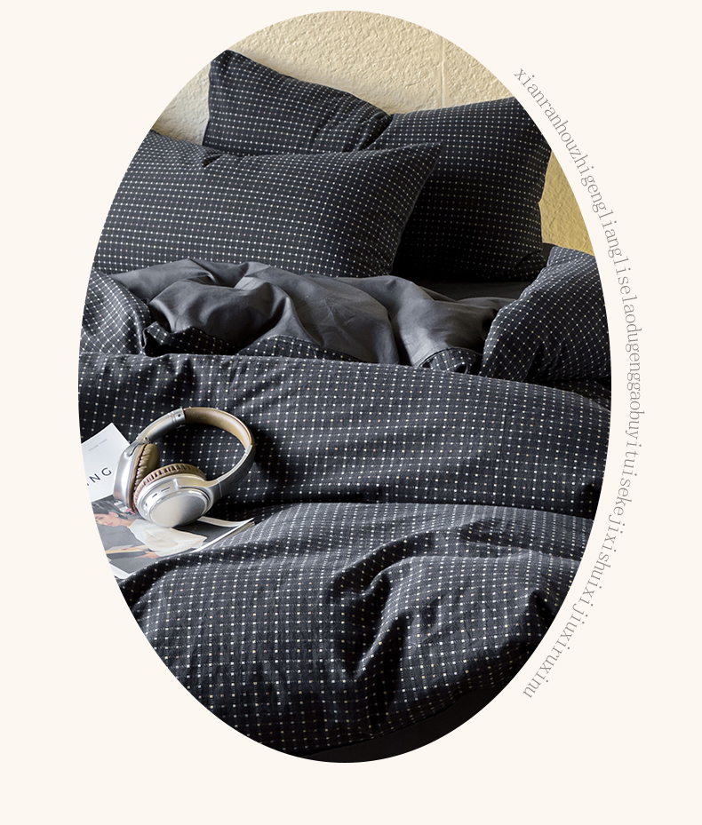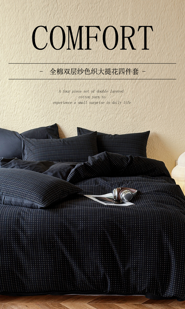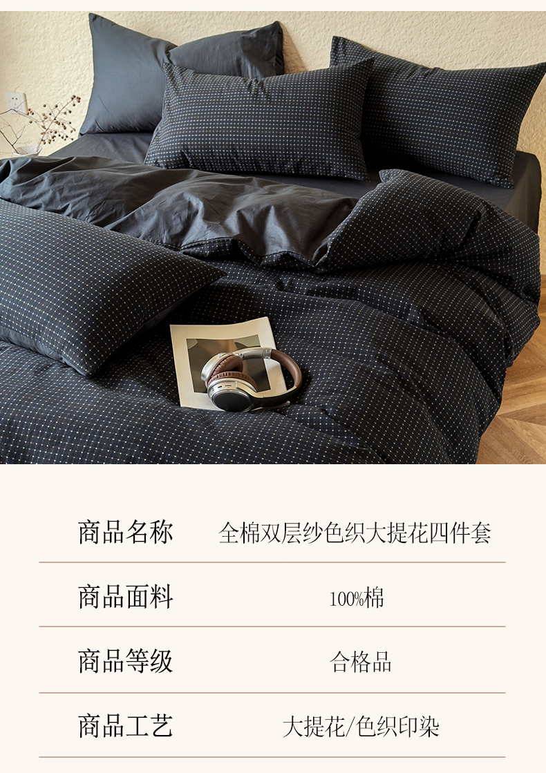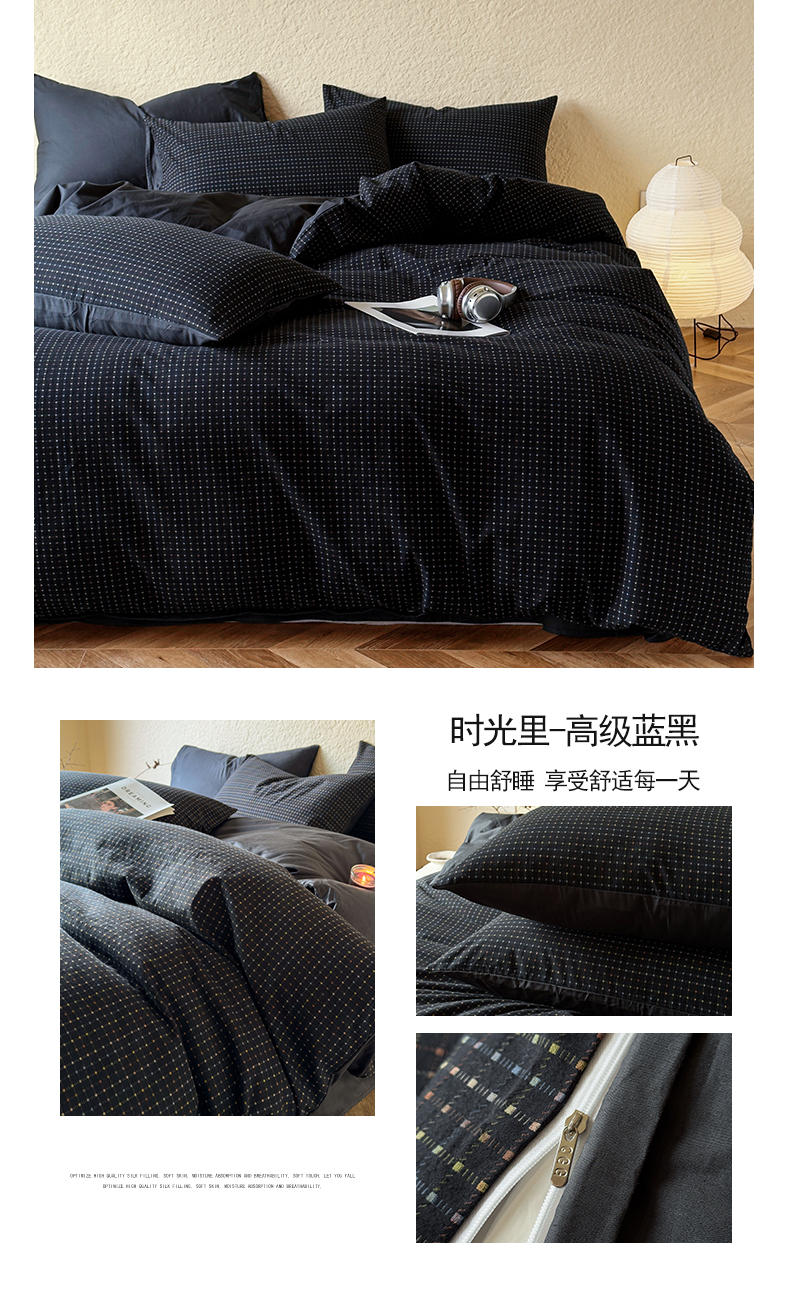 当前位置: 91家纺网 > 商品网购 > 床品套件 > 四件套 > 全棉普通四件套 > 琪格格纺织 2026新款纯棉纯棉色织肌理纹提花华夫格纯棉轻奢简约款四件套 时光里-高级蓝黑