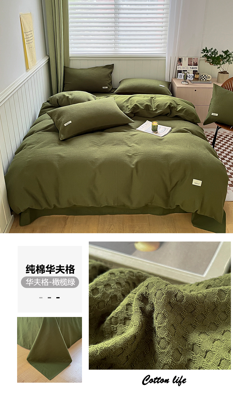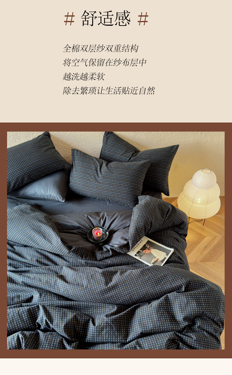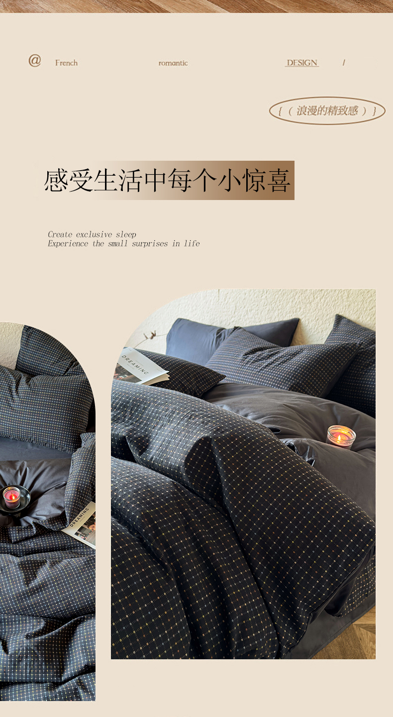 当前位置: 91家纺网 > 商品网购 > 床品套件 > 四件套 > 全棉普通四件套 > 琪格格纺织 2026新款纯棉纯棉色织肌理纹提花华夫格纯棉轻奢简约款四件套 时光里-高级蓝黑