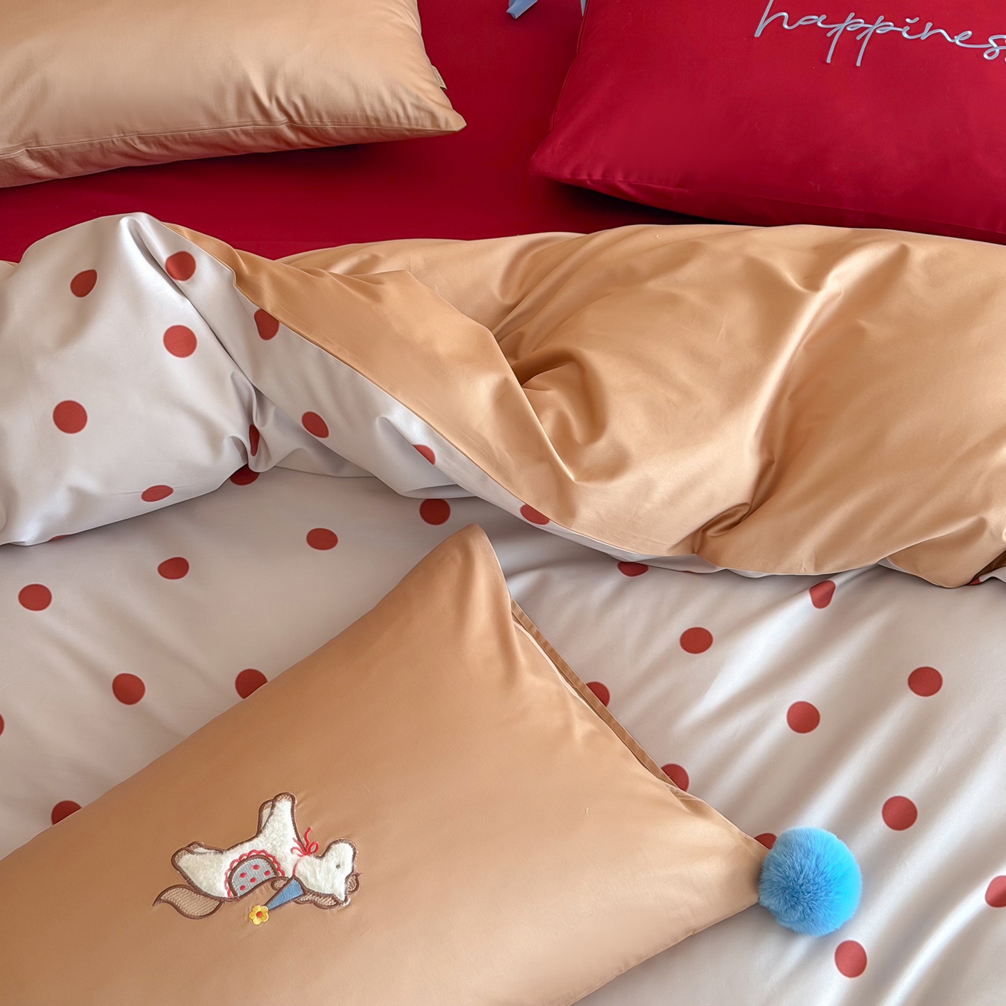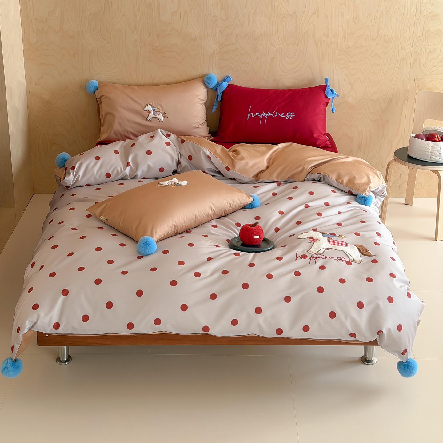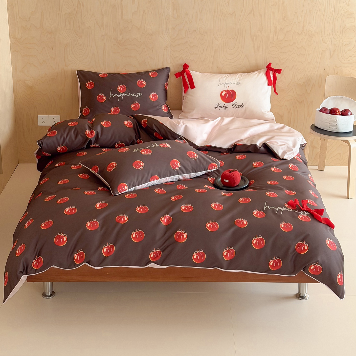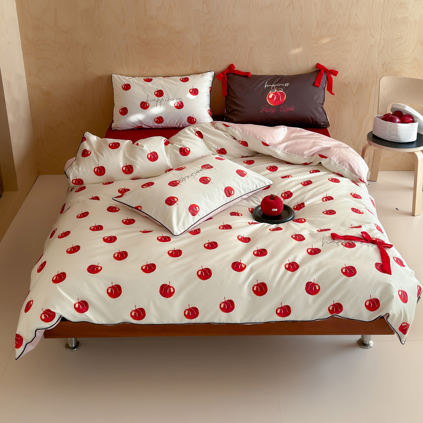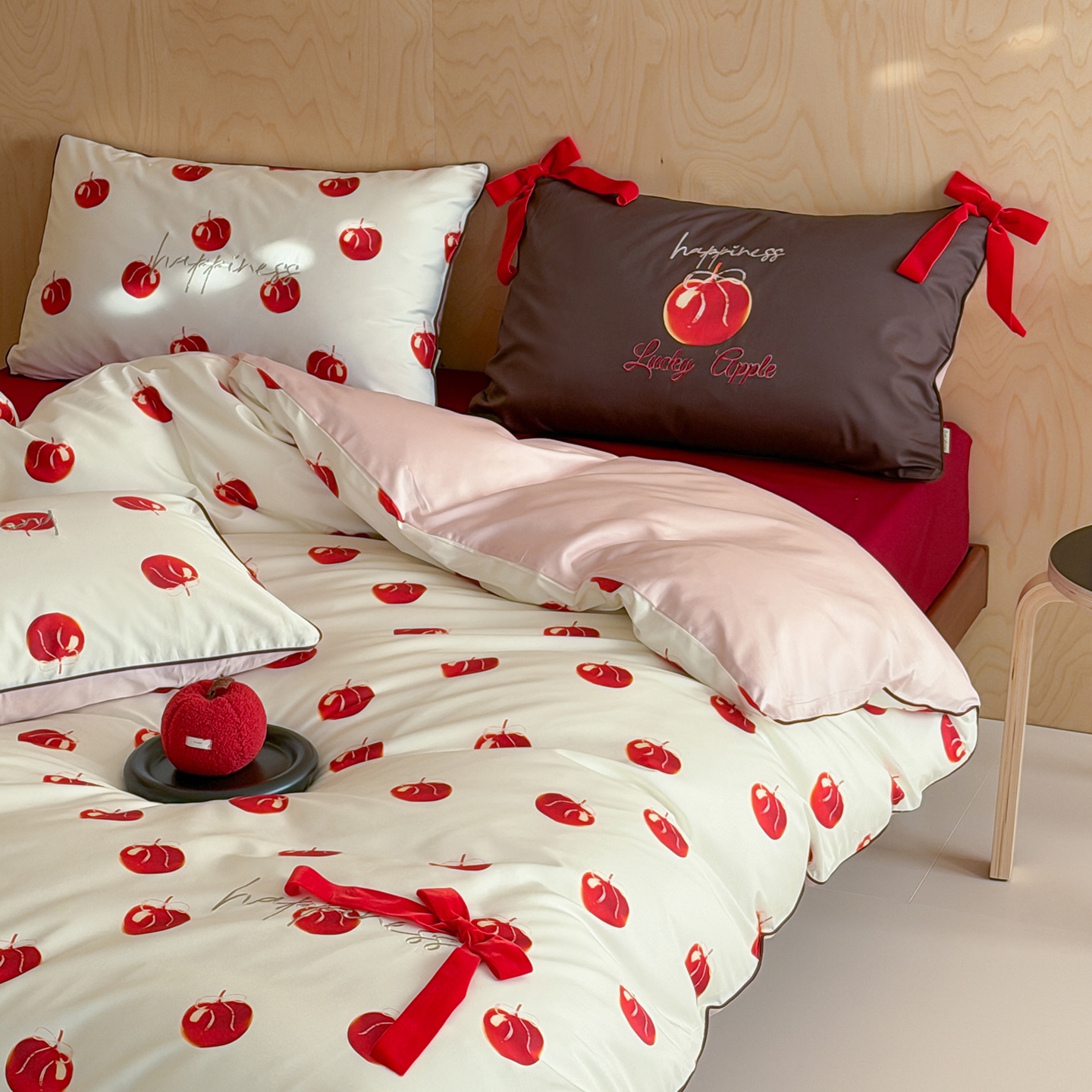 当前位置: 91家纺网 > 商品网购 > 床品套件 > 四件套 > 全棉普通四件套 > 桔子家纺 2026春夏新款100s全棉纯棉幸运系列四件套-场景二 幸运果(白色)