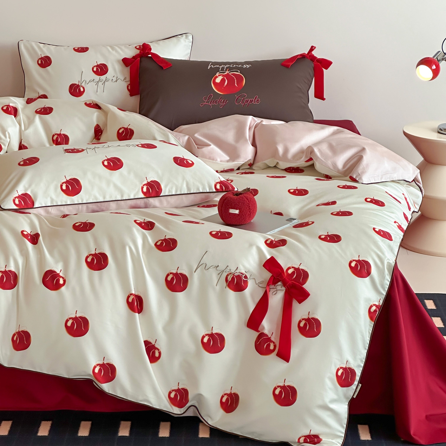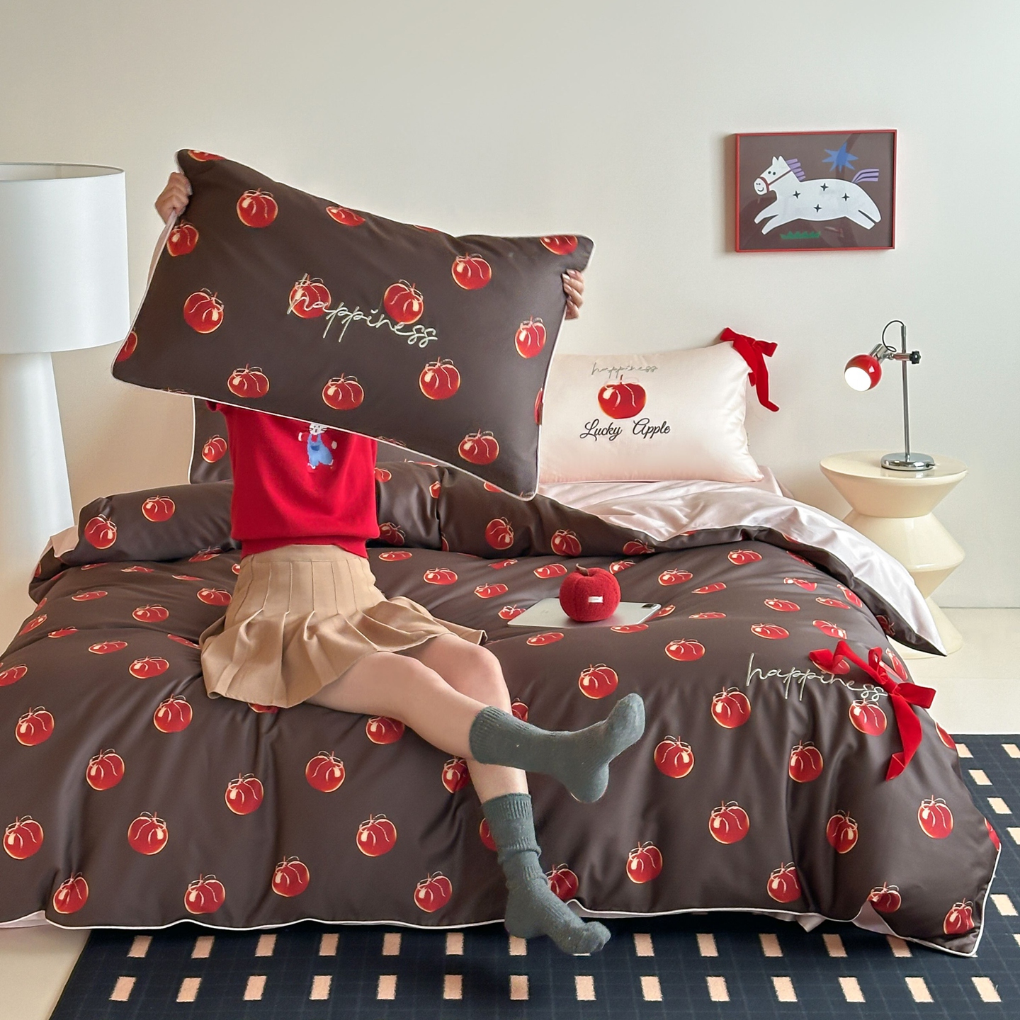 当前位置: 91家纺网 > 商品网购 > 床品套件 > 四件套 > 全棉普通四件套 > 桔子家纺 2026春夏新款100s全棉纯棉幸运系列四件套-场景一 幸运果(棕色)