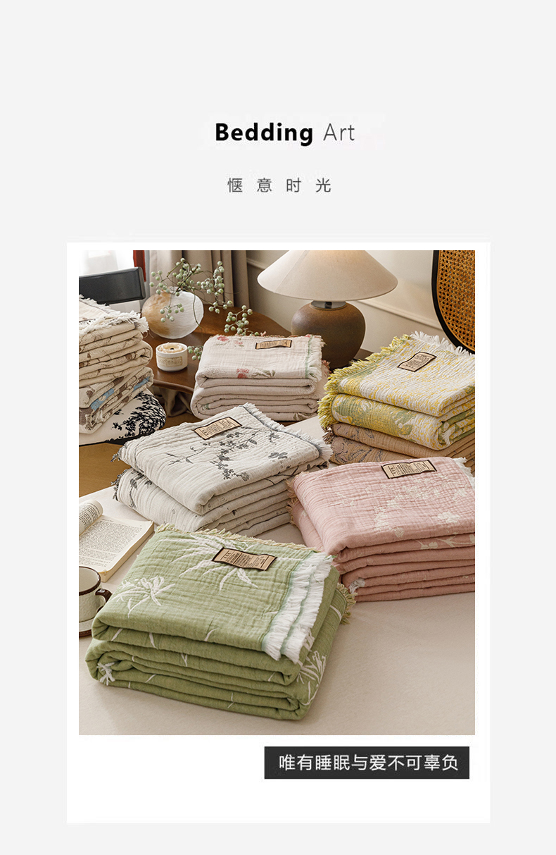 • 91家纺网 家纺一手货源 找家纺 朴尔家纺-毛巾被 2026新款全棉60s精细纱流苏花边四层纱布毛巾被 暖阳