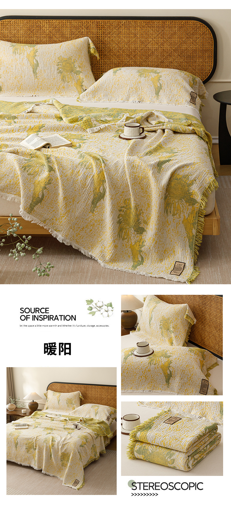朴尔家纺-毛巾被 2026新款全棉60s精细纱流苏花边四层纱布毛巾被 暖阳