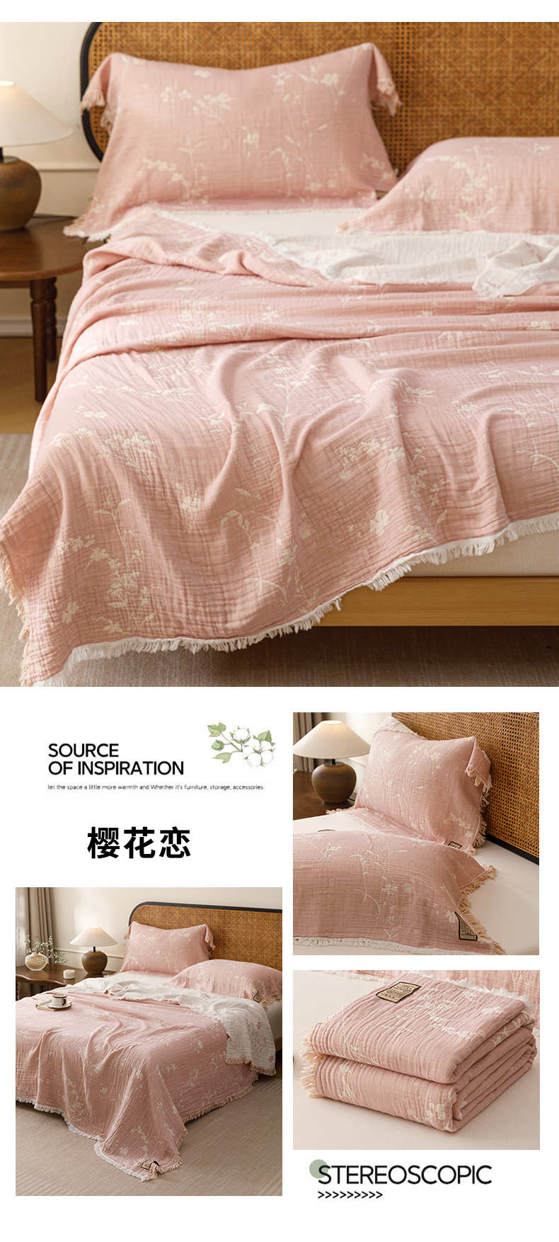 (总)朴尔家纺-毛巾被 2026新款全棉60s精细纱流苏花边四层纱布毛巾被,春木兰,花饰,兰草情,蓝色随想,暖阳,樱花恋,芝芝梅,竹意,组合图