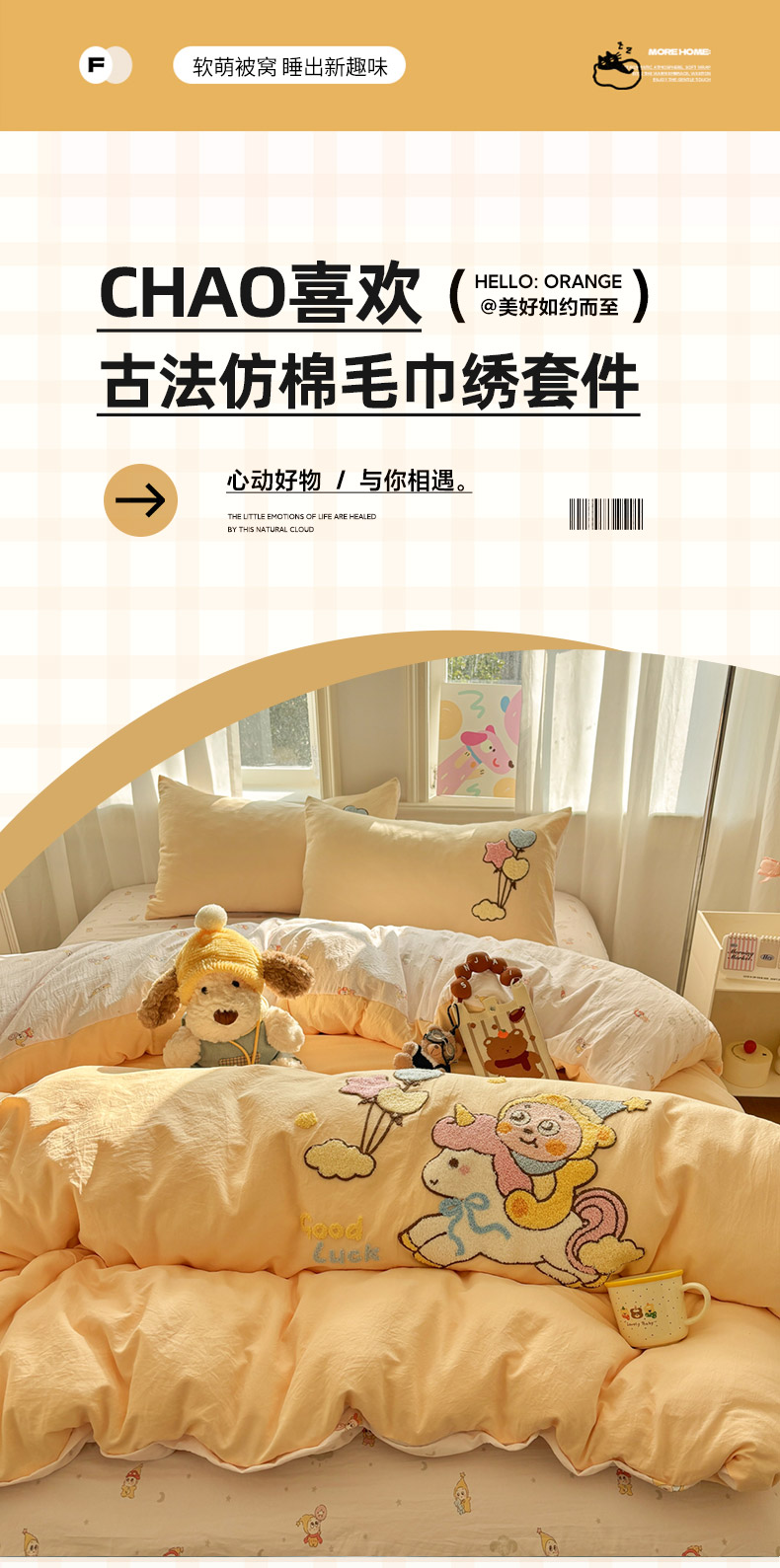 当前位置: 91家纺网 > 商品网购 > 床品套件 > 四件套 > 其它四件套 > 色鬼布艺高端家居主号 2026新款古法毛巾绣四件套 气球星人-黄