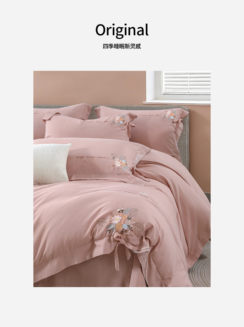 (总)优姿家纺 2026新款全棉拼接绣花四件套,繁花粉,繁花灰,繁花桔,繁花蓝,繁花绿,繁花紫