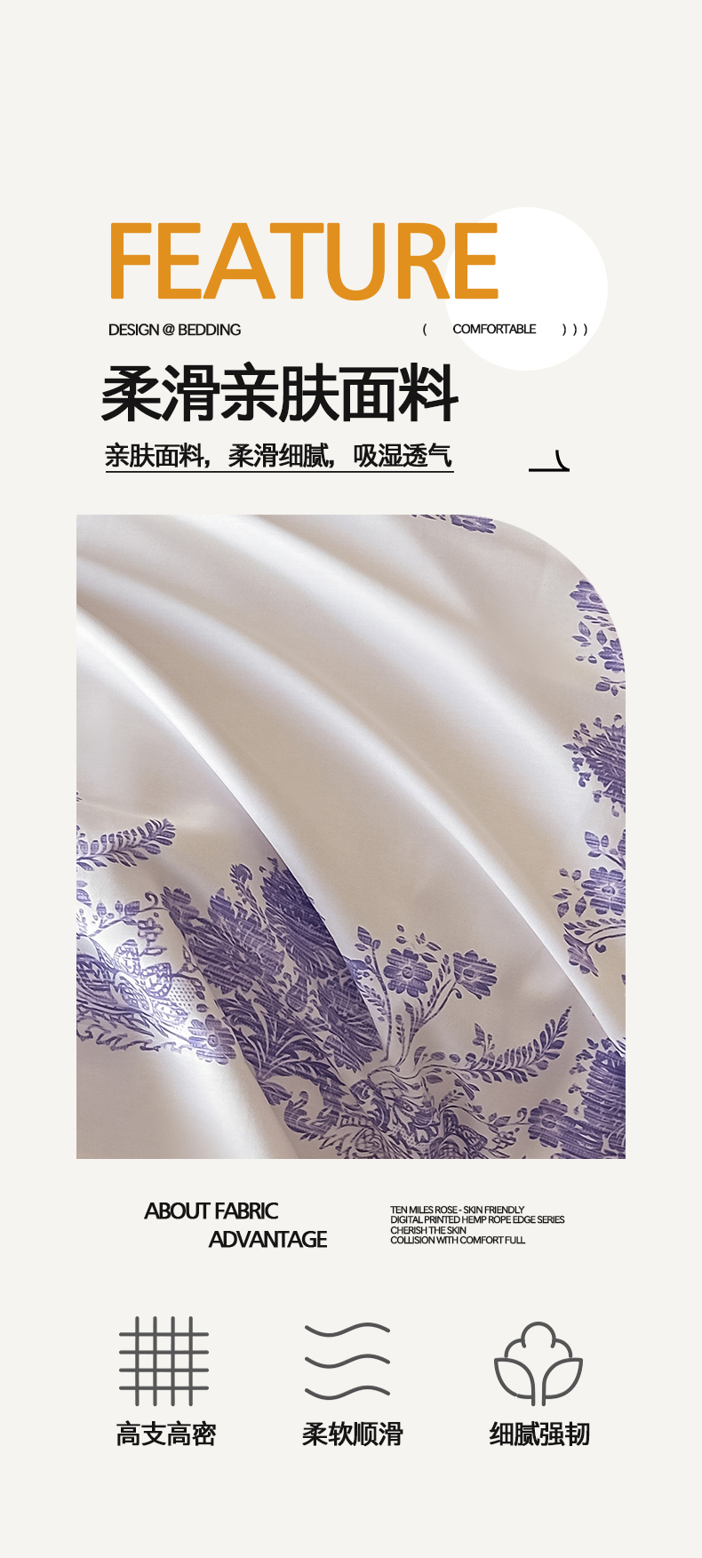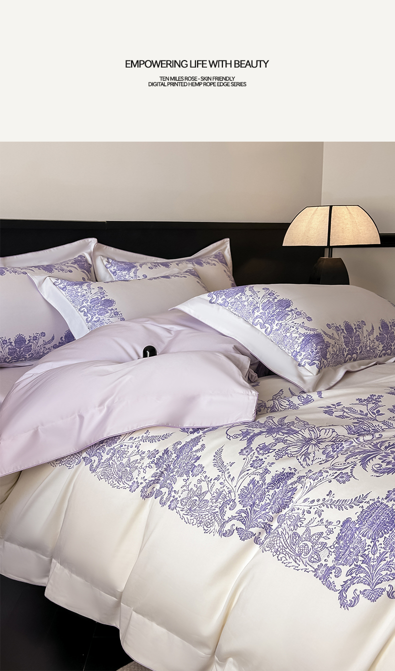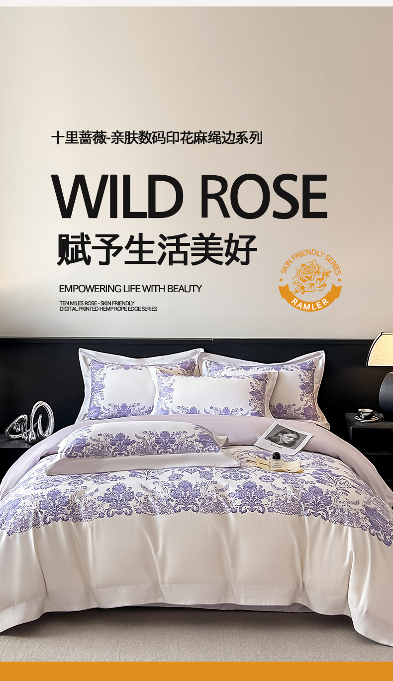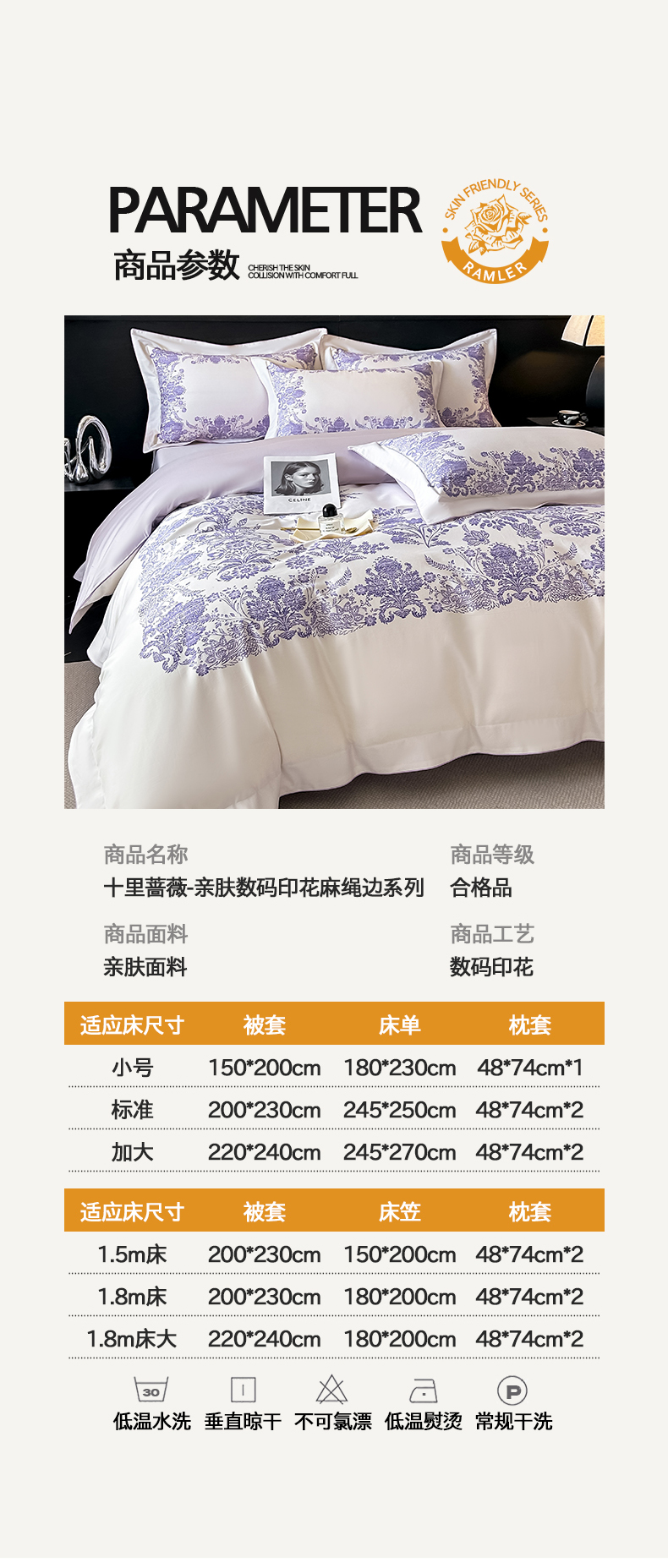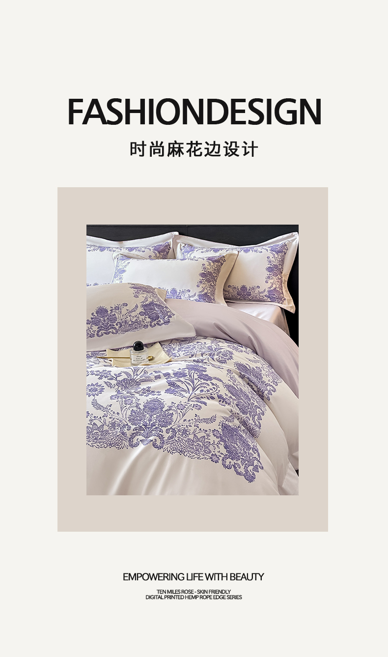当前位置: 91家纺网 > 商品网购 > 床品套件 > 四件套 > 其它四件套 > 置顶家纺 2026新款十里蔷薇-亲肤数码印花麻绳边系列 十里蔷薇-香芋紫