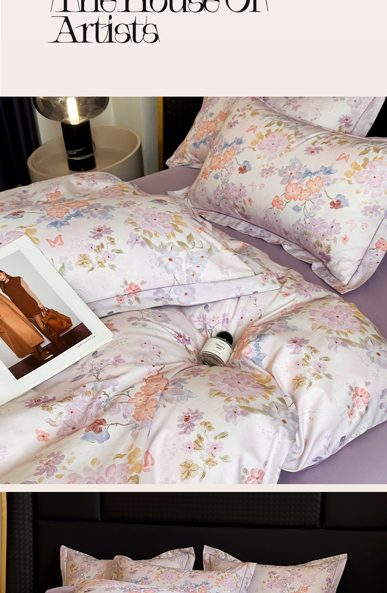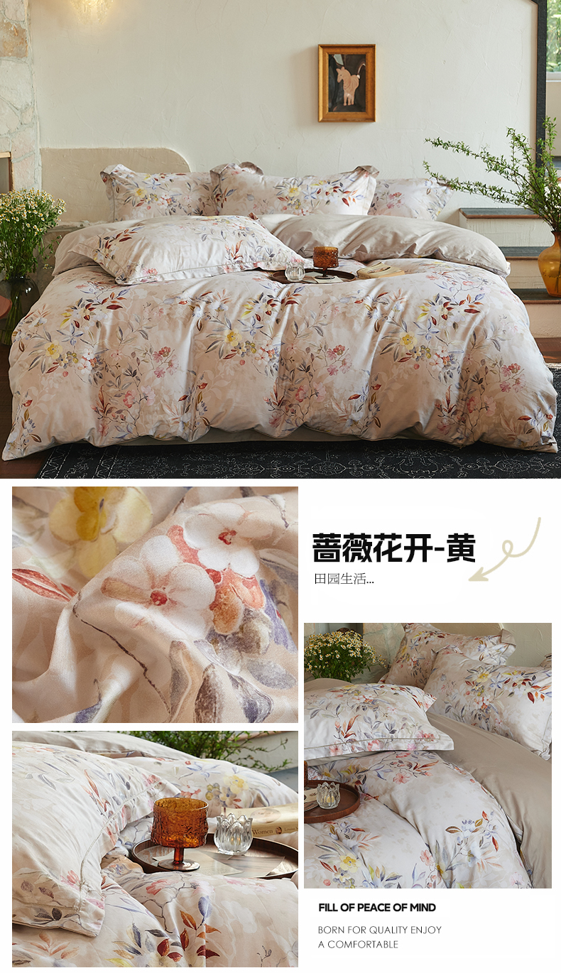 (总)润锦云 2026新款A类长绒棉纯棉数码印花宽边四件套,暗香疏影,花漾盛典,玫瑰庄园,叶语悠然