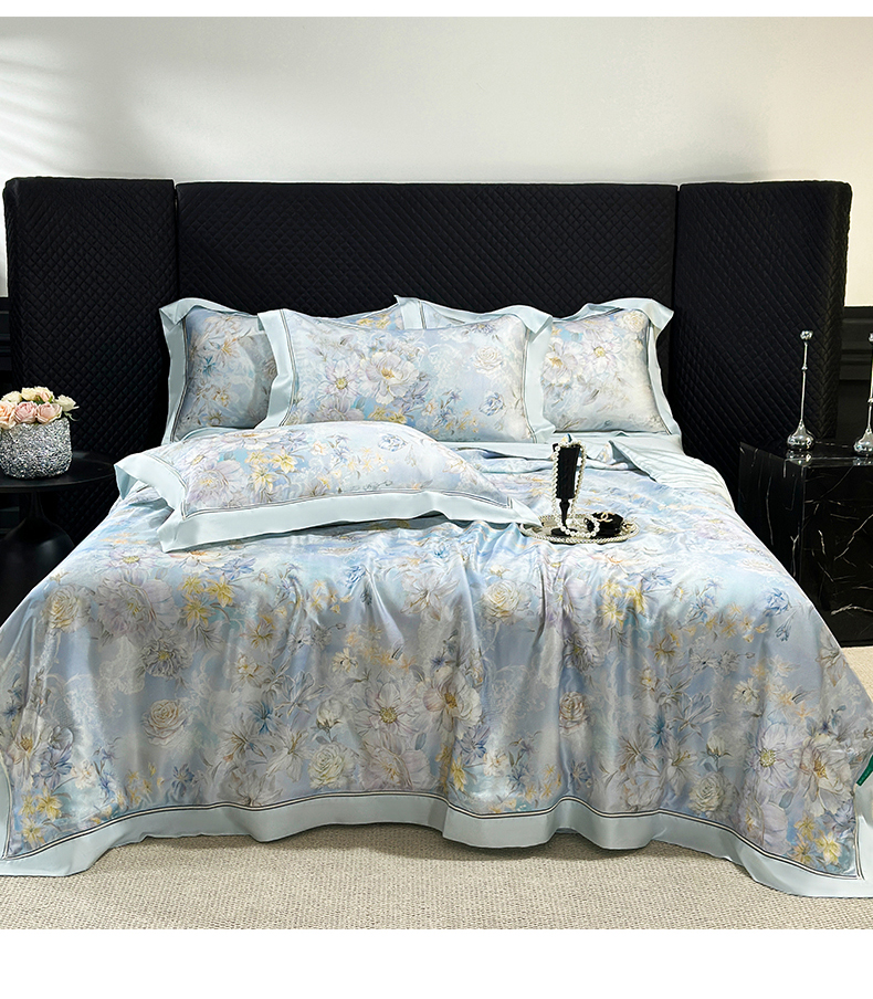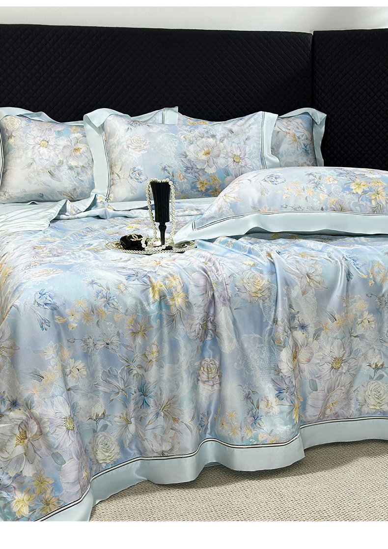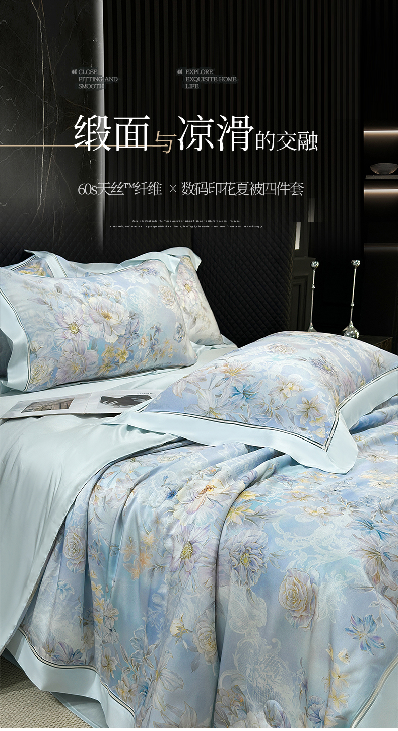 • 91家纺网 家纺一手货源 找家纺 岚司羽 2026春夏新款60天丝夏被四件套夏凉被空调被系列 汀兰