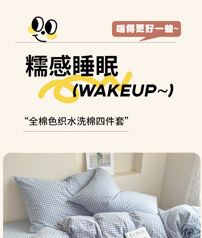 当前位置: 91家纺网 > 商品网购 > 床品套件 > 四件套 > 全棉普通四件套 > 佑佳家纺 2026新款全棉色织水洗棉四件套 蓝小格