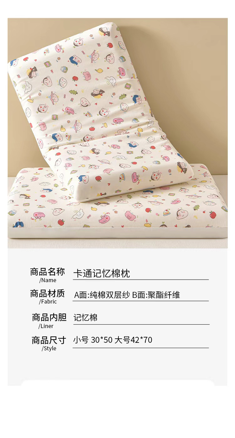 商品名称:小桃姐家纺 2025新款印花卡通记忆棉枕 枕头枕芯 小新