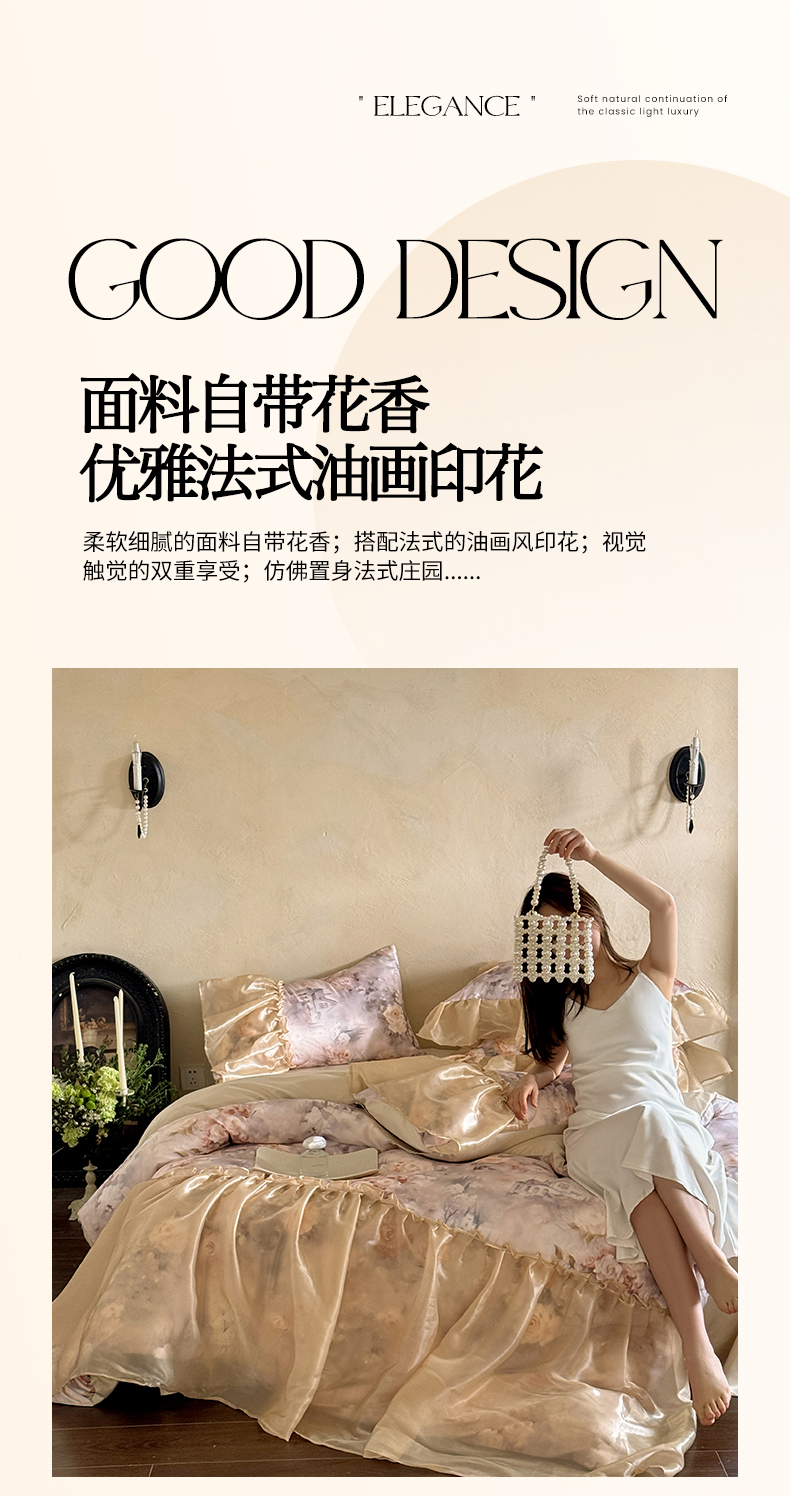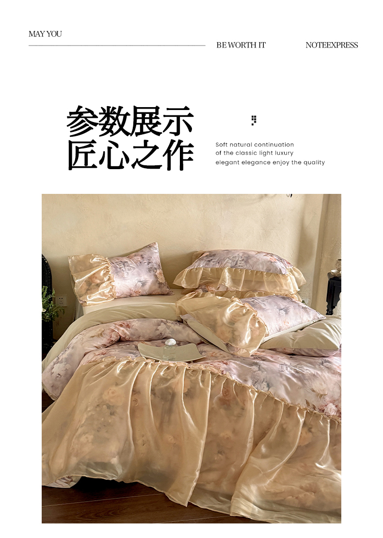 商品名称:艾米家居 2026春夏新款裙边款法式天丝棉冰丝系列四件套提供买家秀 花旦裙边款