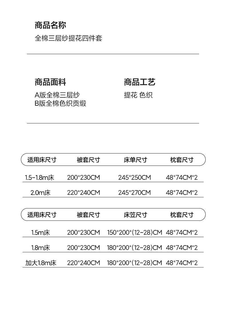 商品名称:华超针织 2026新款全棉三层纱提花四件套 伯尔纳-黄