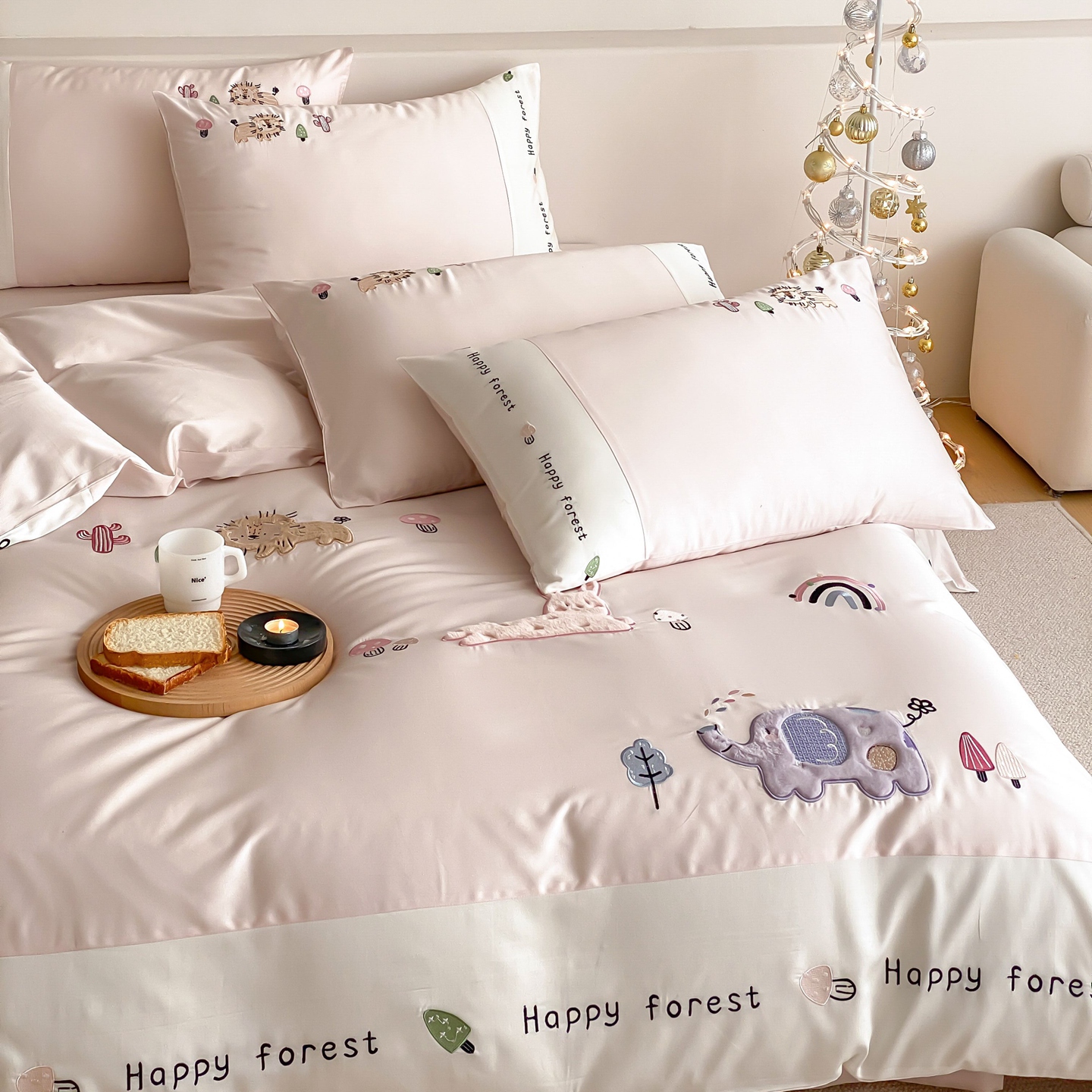 当前位置: 91家纺网 > 商品网购 > 床品套件 > 四件套 > 长绒棉四件套 > 佳汐蓝家纺 2026春夏新款长绒棉纯棉贴布刺绣四件套-暖暖森林屋 暖暖森林屋-粉