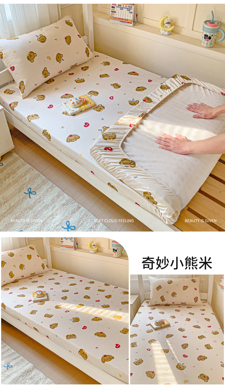 纽缦家纺 2026新款云感提花双层纱学生床笠 奇妙小熊米