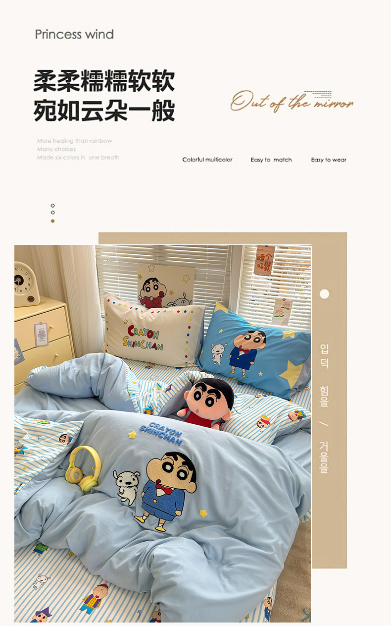 商品名称:(总)一霖家纺 2026新款正品蜡笔小新高克重云朵棉毛巾绣数码枕套系列四件套热推款