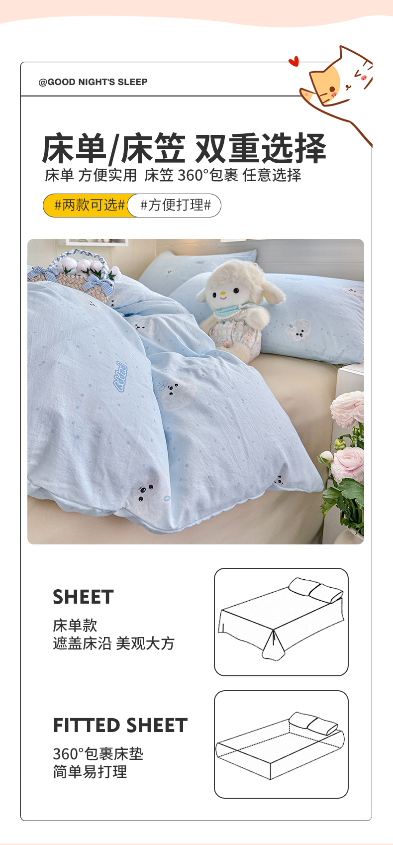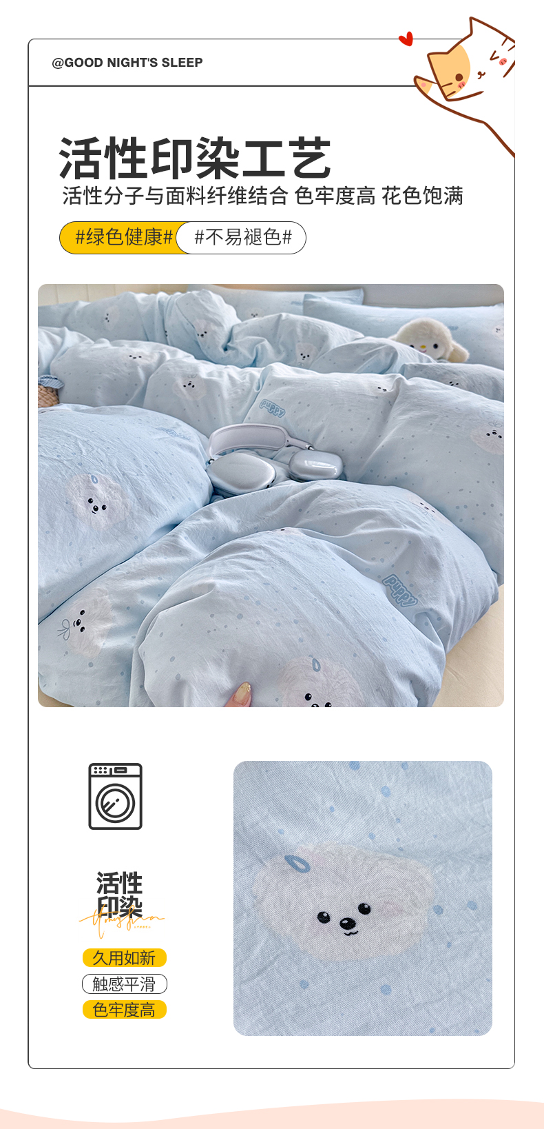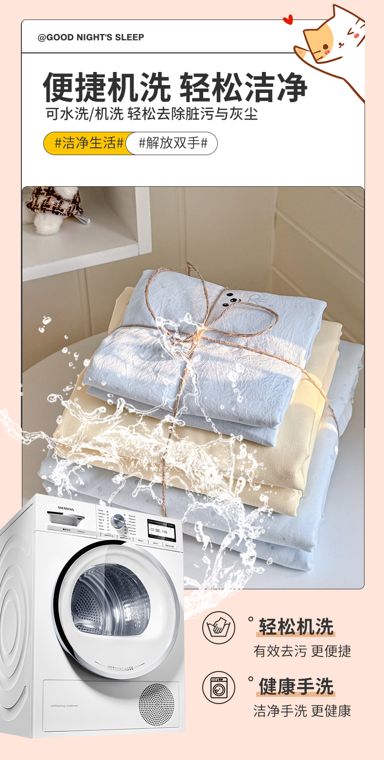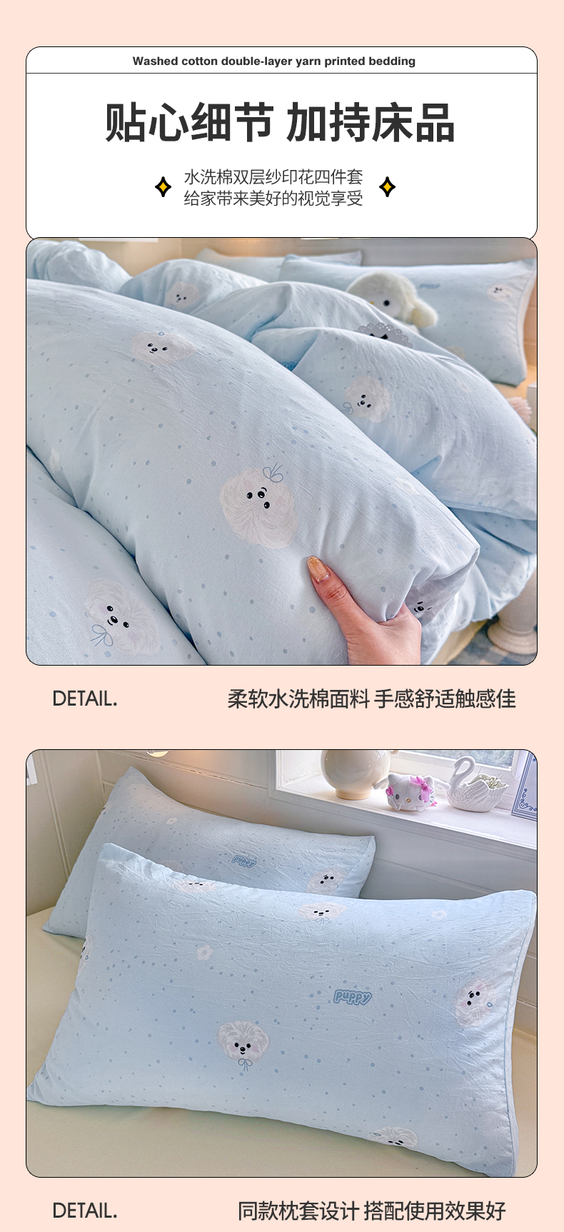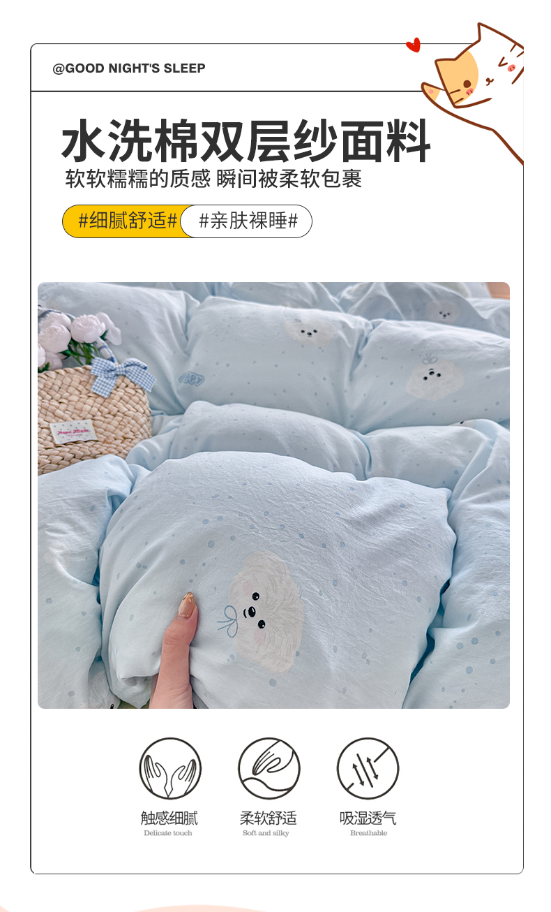 当前位置: 91家纺网 > 商品网购 > 床品套件 > 四件套 > 其它四件套 > 罗亿家纺 2026年新款泡芙水洗棉双层纱四件套 波点小狗