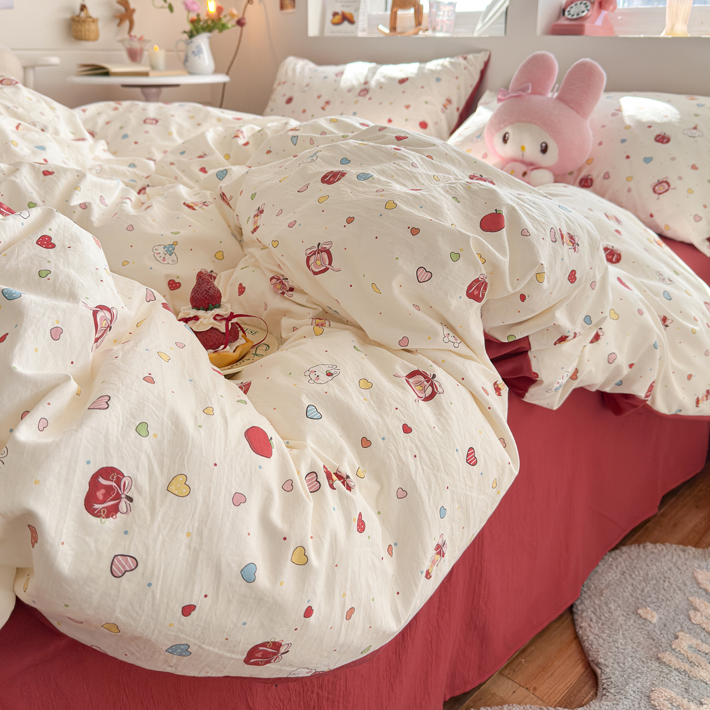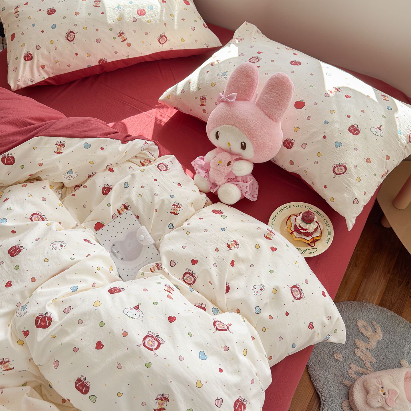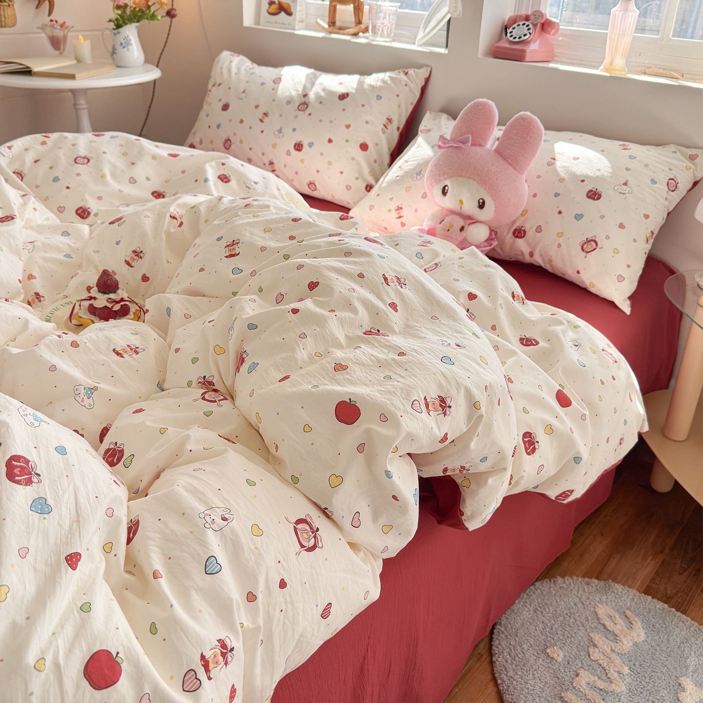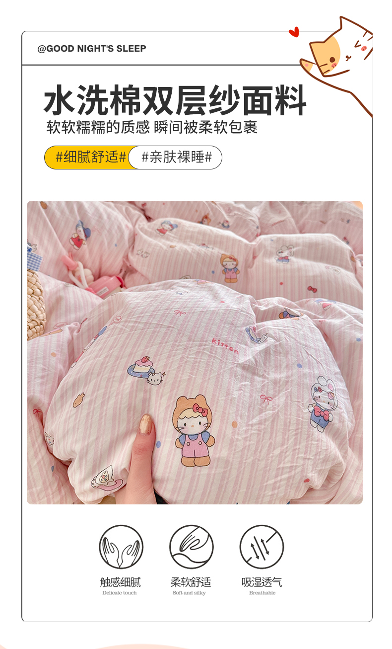 当前位置: 91家纺网 > 商品网购 > 床品套件 > 四件套 > 其它四件套 > 罗亿家纺 2026年新款泡芙水洗棉双层纱四件套 苹果乐园