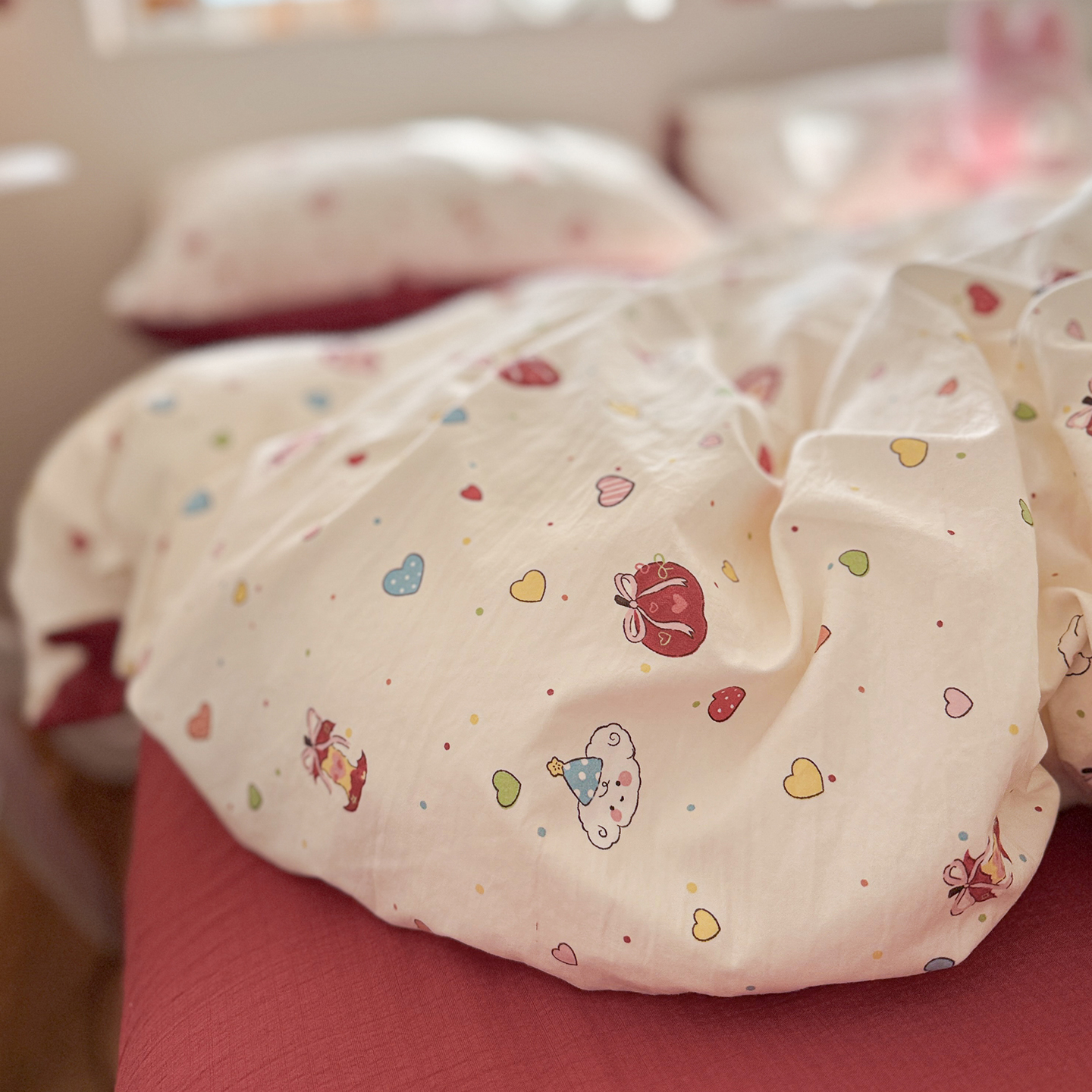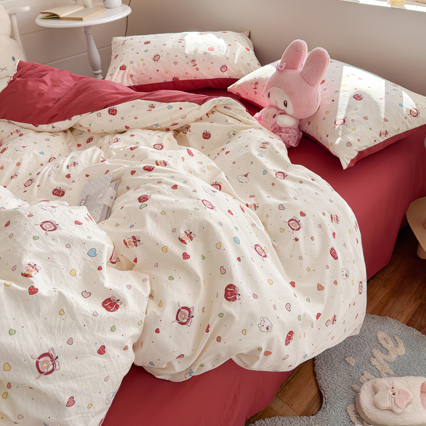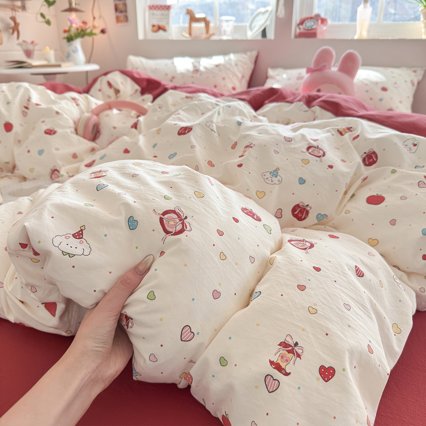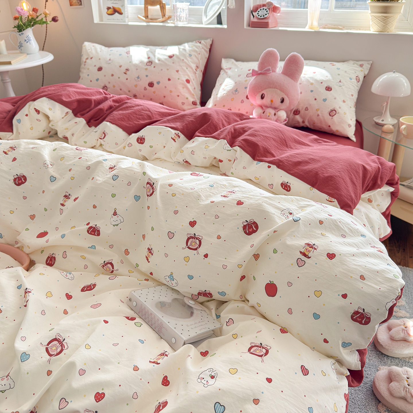 当前位置: 91家纺网 > 商品网购 > 床品套件 > 四件套 > 其它四件套 > 罗亿家纺 2026年新款泡芙水洗棉双层纱四件套 苹果乐园