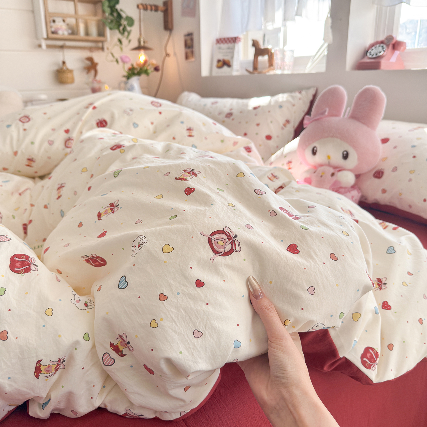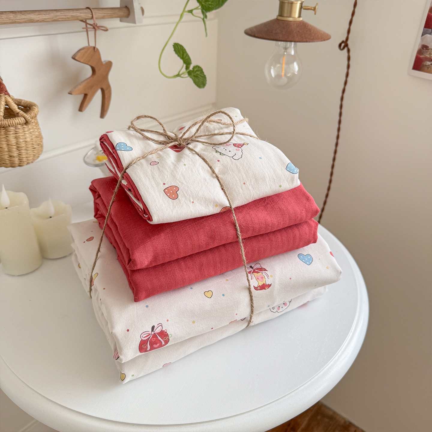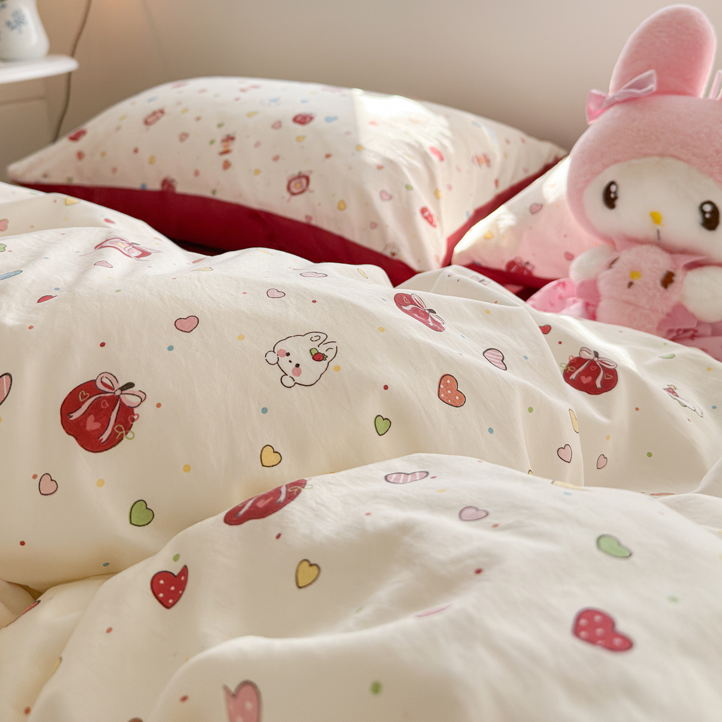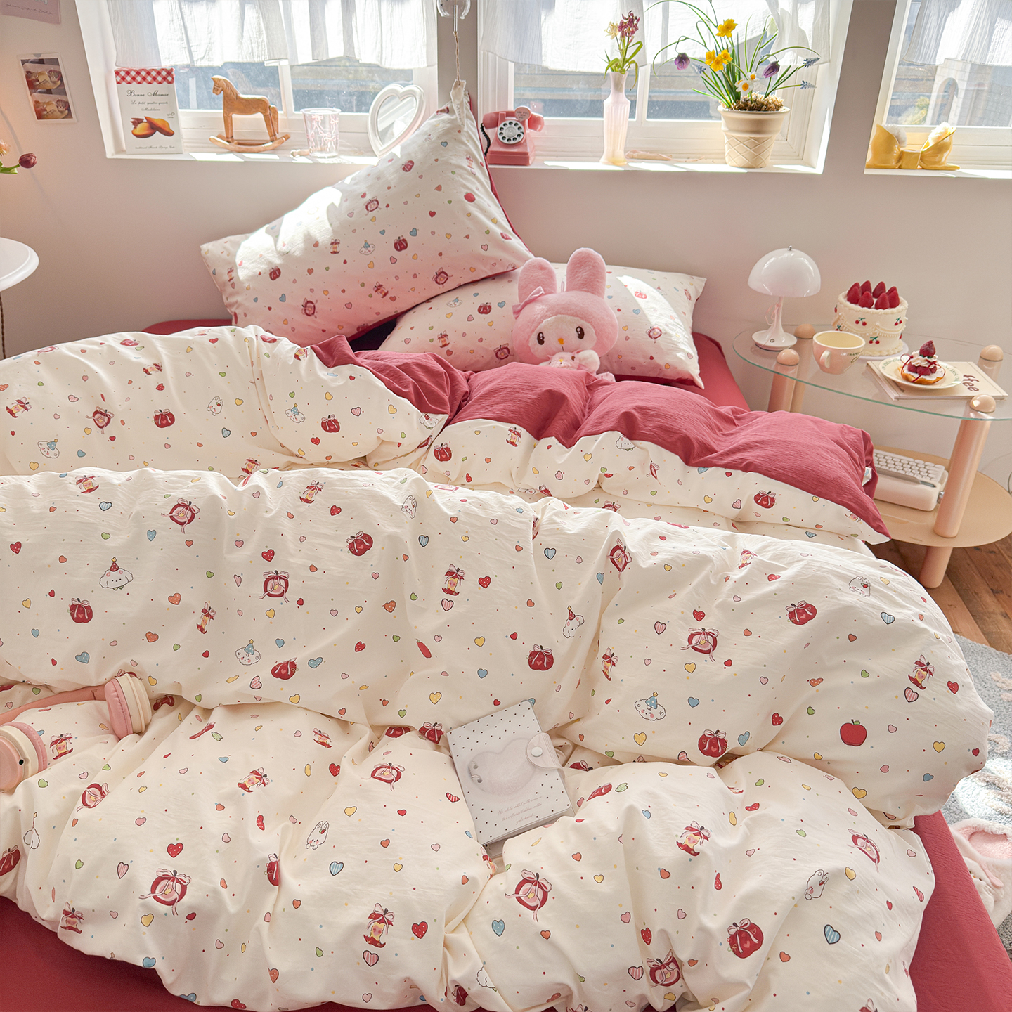 当前位置: 91家纺网 > 商品网购 > 床品套件 > 四件套 > 其它四件套 > 罗亿家纺 2026年新款泡芙水洗棉双层纱四件套 苹果乐园