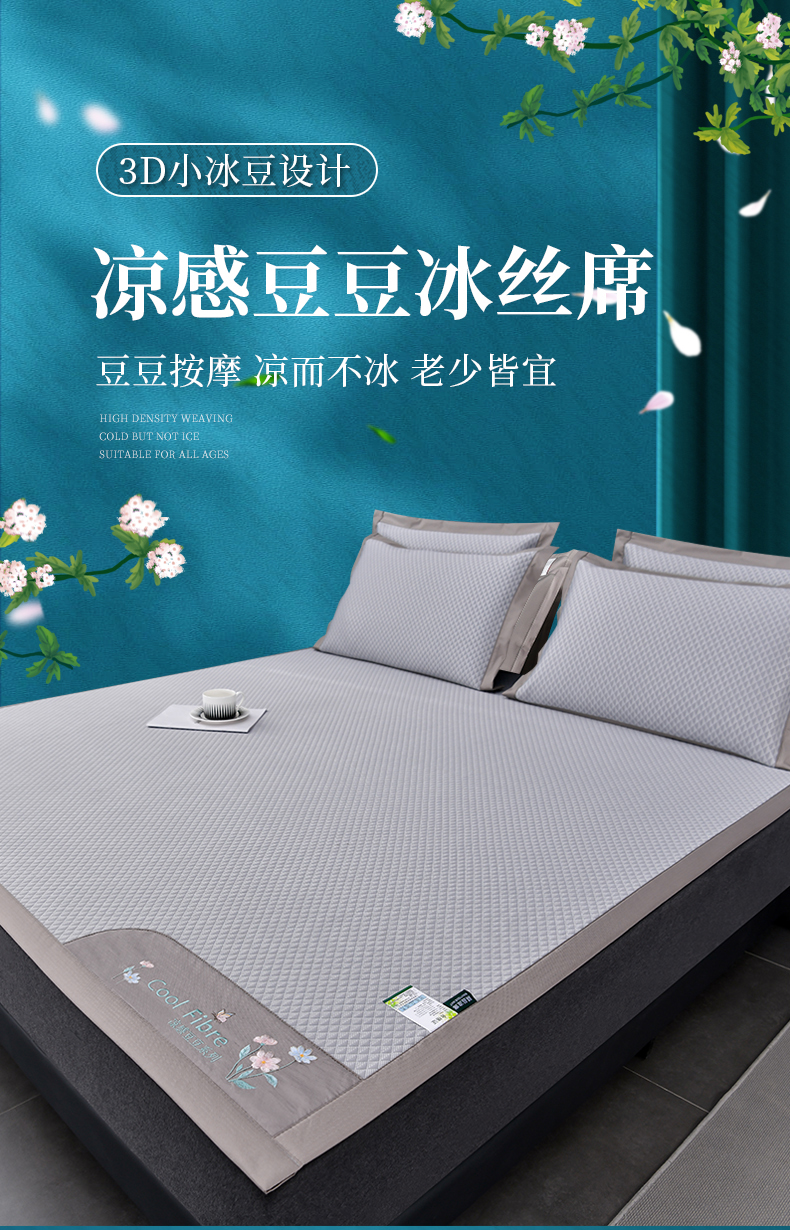 (总)小牛席业 2026新款小冰块大象凉感冰丝席凉席竹席藤席冰藤席乳胶席豆豆席,粉色,香槟,灰色,绿色,蓝色