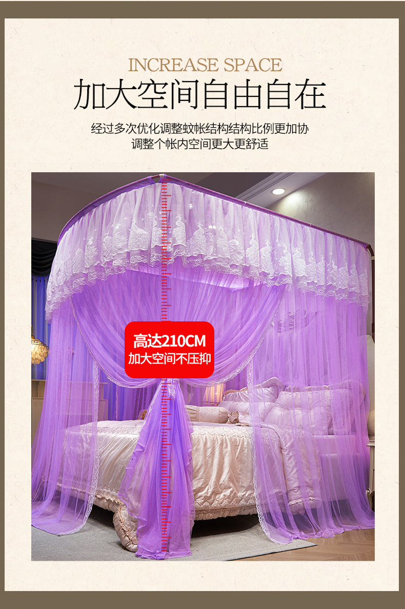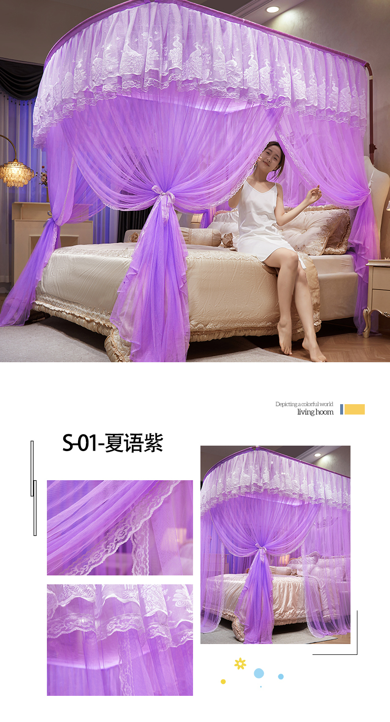 (总)舞夜盛世 2026新款u型拉幕导轨蚊帐轨道蚊帐落地宫廷蚊帐—春暖花开,春暖花开-粉色,春暖花开-黄色,春暖花开-水绿,春暖花开-玉色,春暖花开-紫色