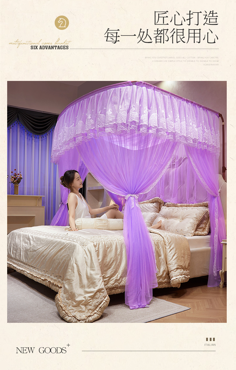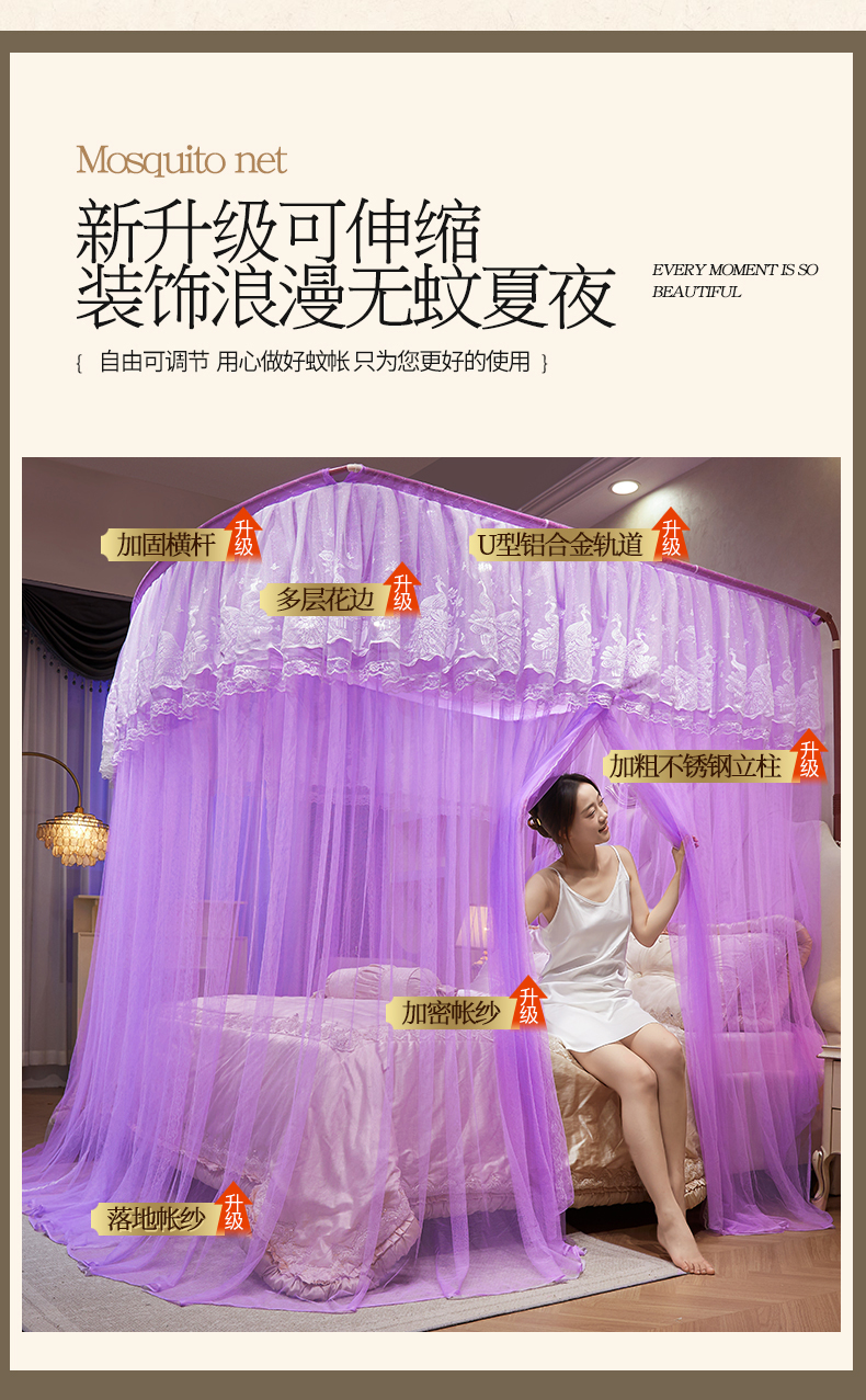 (总)舞夜盛世 2026新款U型导轨落地宫廷蚊帐-花好月圆,花好月圆-黄色,花好月圆-灰色,花好月圆-玉色,花好月圆-紫色