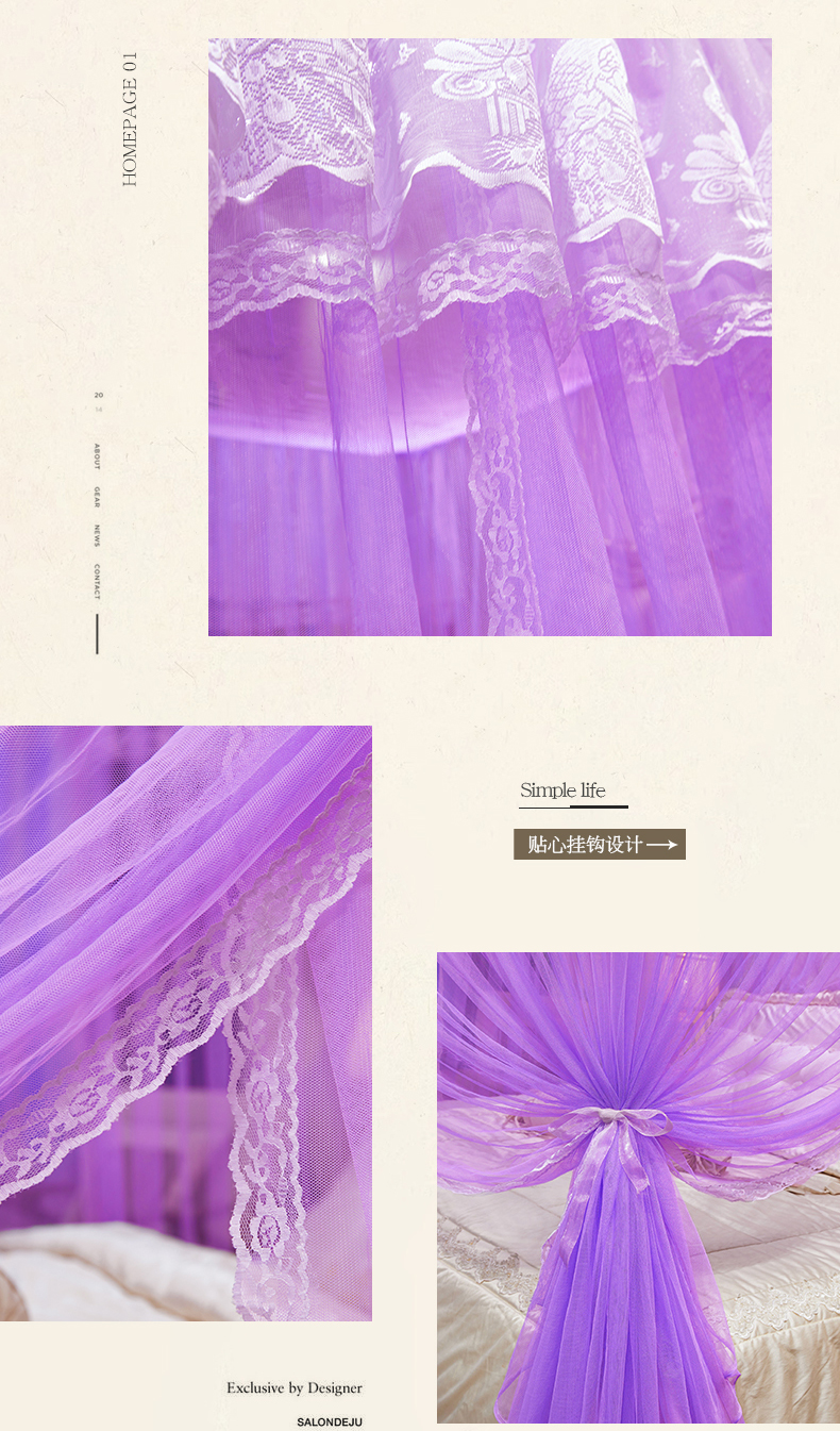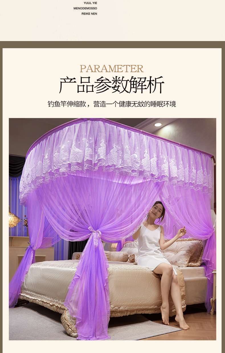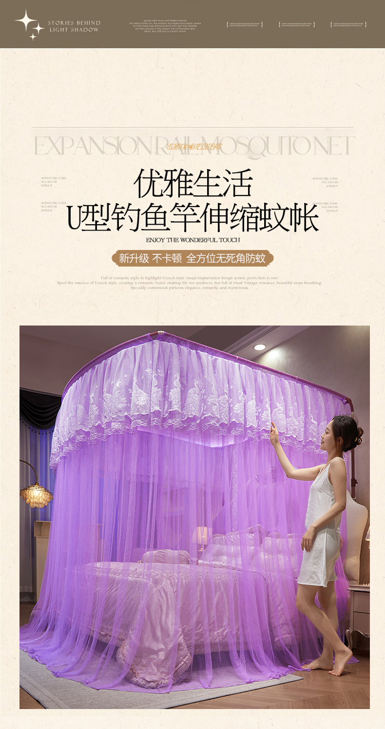 商品名称:舞夜盛世 2026新款优雅生活U型钓鱼竿伸缩蚊帐-S-01 S-01-紫色