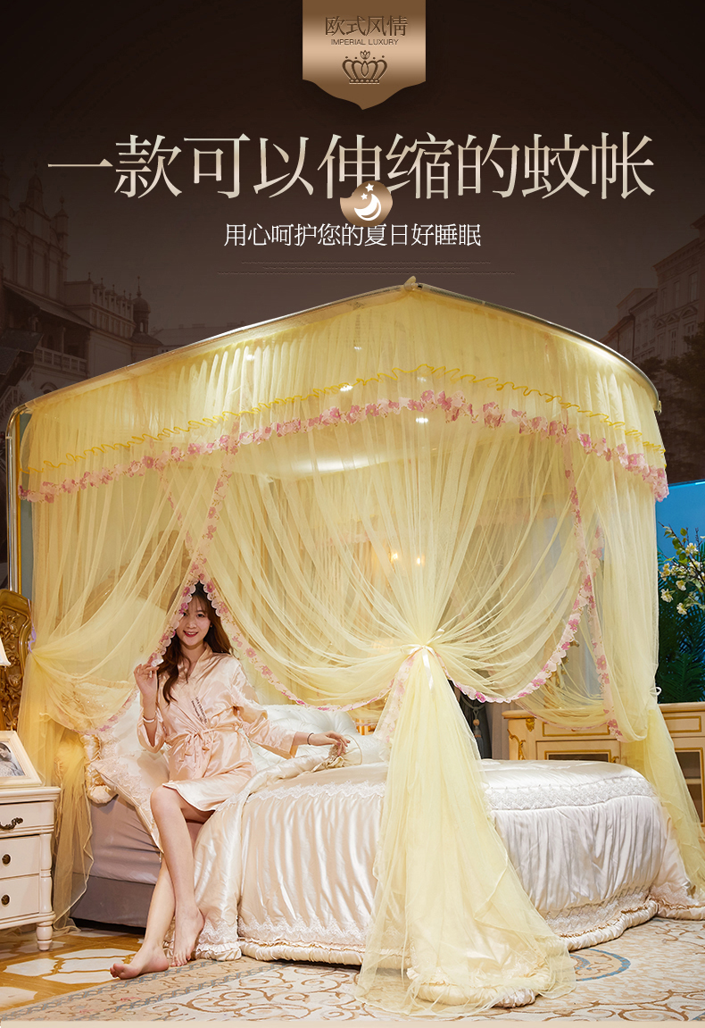 (总)舞夜盛世 【欧式风情】2026新款落地三开门宫廷蚊帐,欧式情怀-黄色,欧式情怀-灰色,欧式情怀-玉色,欧式情怀-紫色