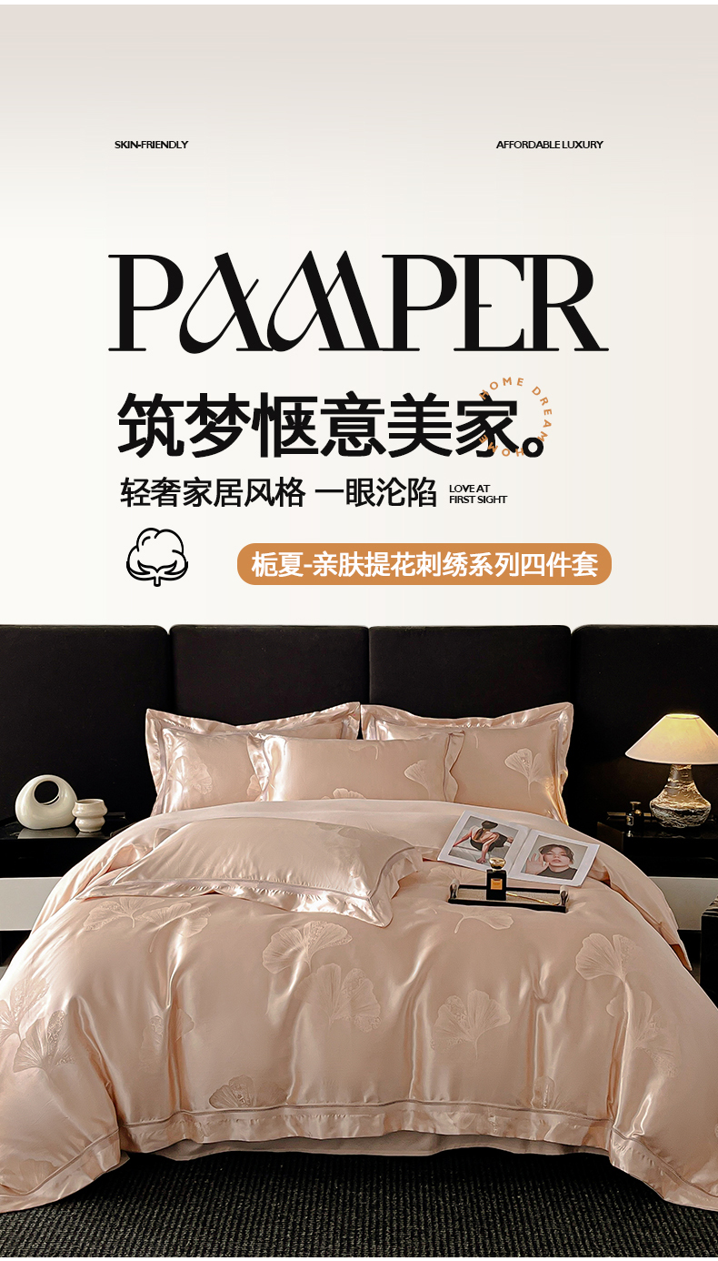 (总)置顶家纺 2026新款栀夏银杏叶亲肤提花刺绣四件套