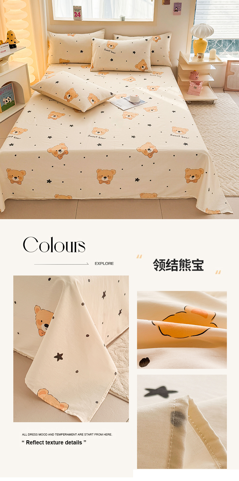 当前位置: 91家纺网 > 商品网购 > 床上用品 > 床单 > 小蓝孩家纺 2026新款12868全棉印花单床单(联系商家可打折,尺寸可定制) 忧郁棕熊