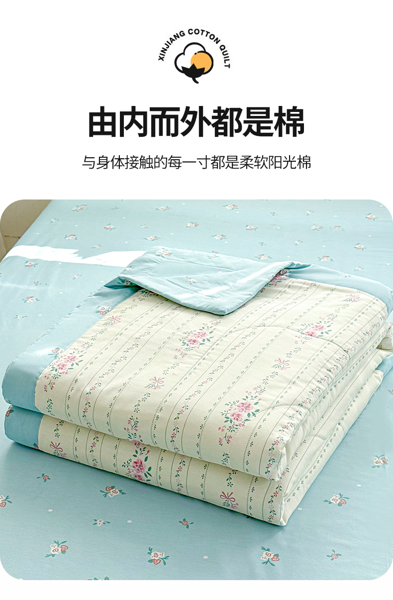 禹祥家纺 (包质检)2026新款A类里外全棉新疆棉夏被夏凉被空调被儿童被 白藤