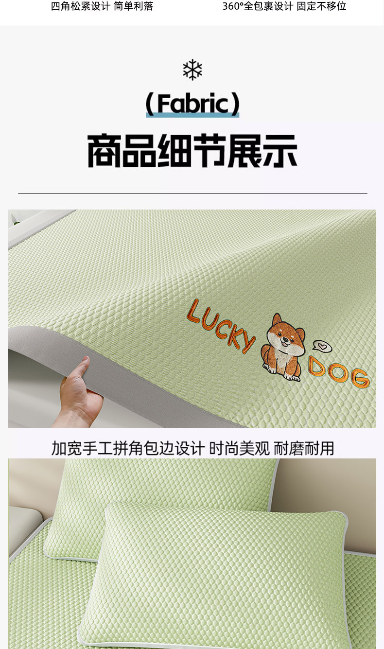 当前位置: 91家纺网 > 商品网购 > 床上用品 > 凉席 > 冰丝席 > 福来临家纺 2026新款A类凉豆豆凉感席系列PE冰豆豆席-床笠款-床席款 幸运小狗-绿床笠款