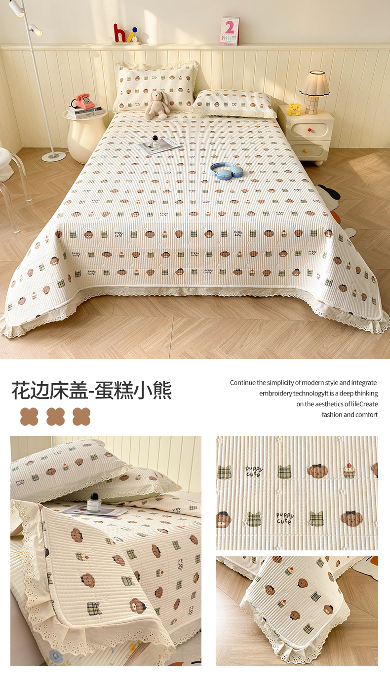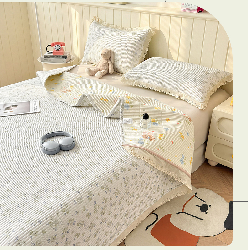商品名称:(总)雯豆家纺 2026春夏新款A类凉感花边床盖三件套