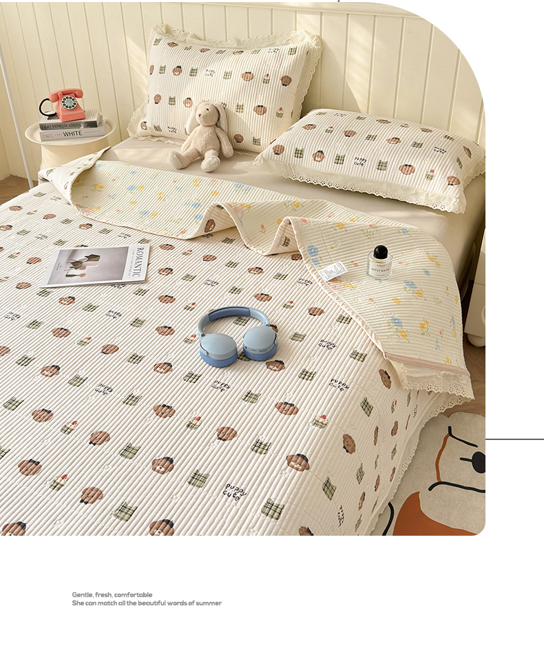 雯豆家纺 2026春夏新款A类凉感花边床盖三件套 花边床盖-熊趣小窝