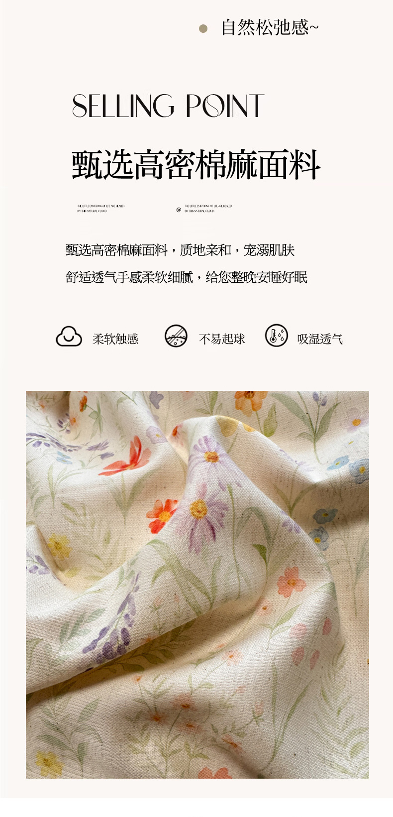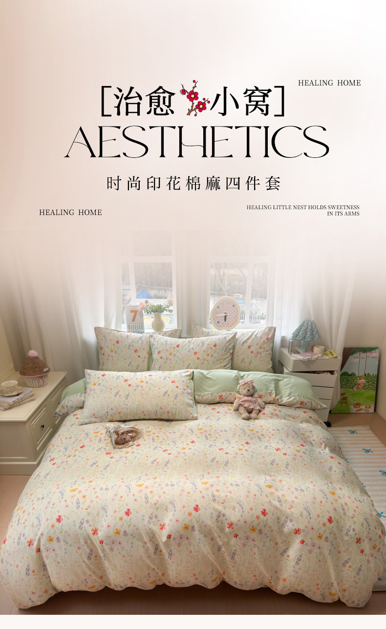 当前位置: 91家纺网 > 商品网购 > 床品套件 > 四件套 > 全棉普通四件套 > 如意朵 2026新款全棉棉麻印花四件套 花影
