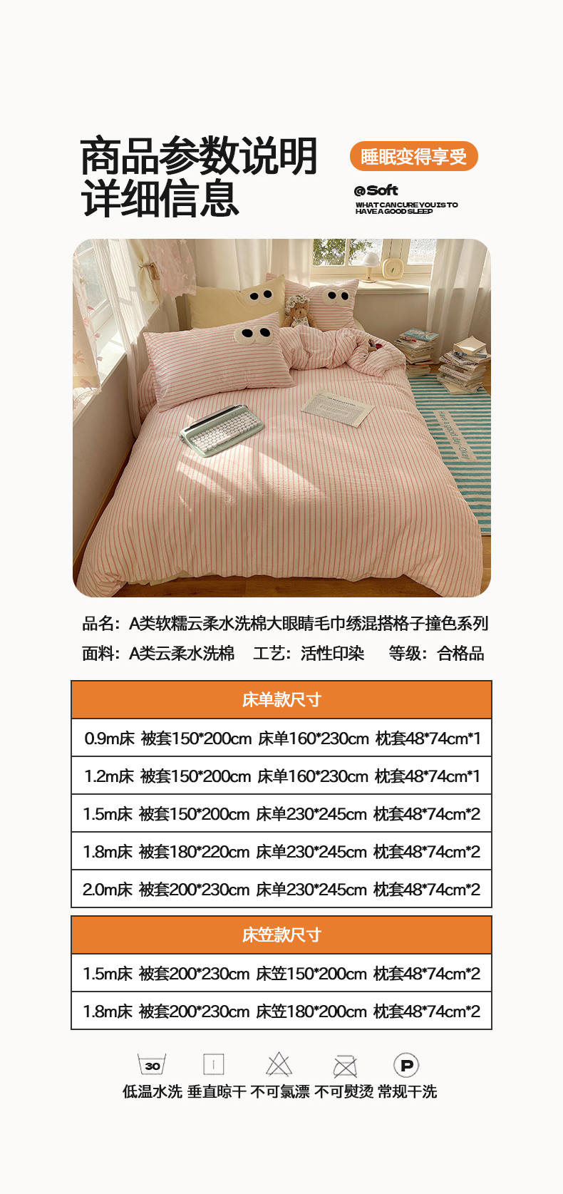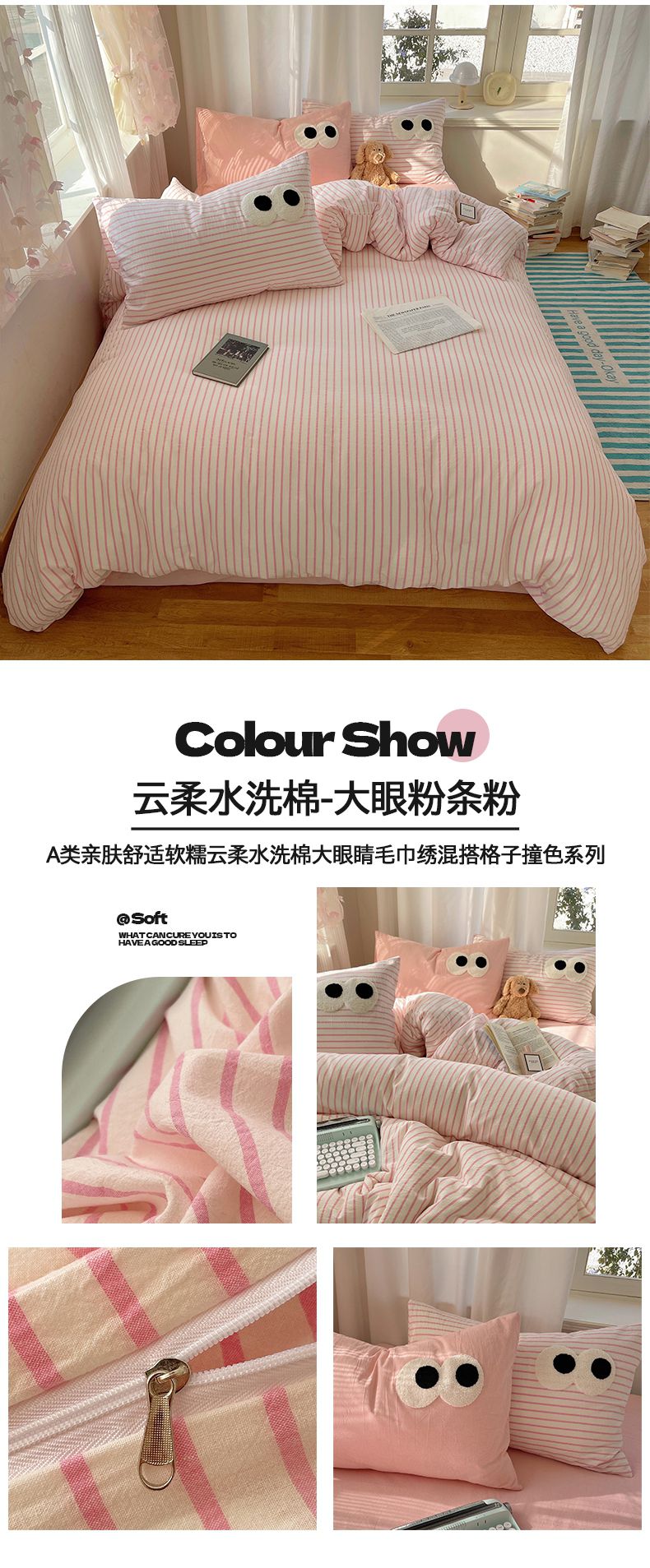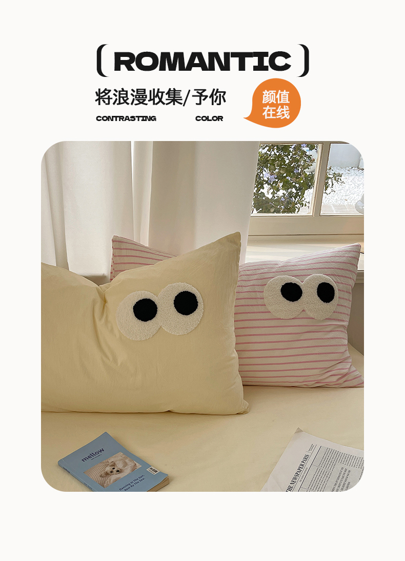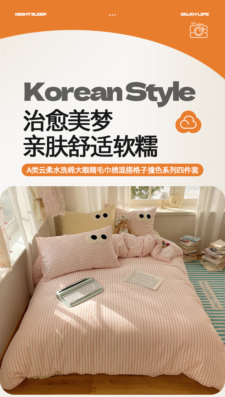 当前位置: 91家纺网 > 商品网购 > 床品套件 > 四件套 > 毛巾绣四件套 > 桃心家居 2026新款A类亲肤舒适软糯云柔水洗棉大眼睛毛巾绣混搭格子撞色系列四件套 云柔水洗棉-大眼粉粉条奶黄