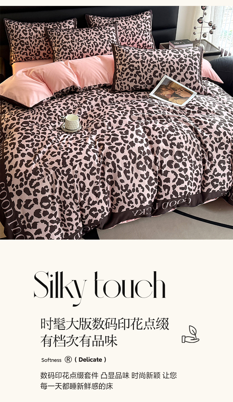 当前位置: 91家纺网 > 商品网购 > 床品套件 > 四件套 > 其它四件套 > 色鬼布艺高端家居主号 2026新款豹纹水洗真丝款四件套 豹纹-粉