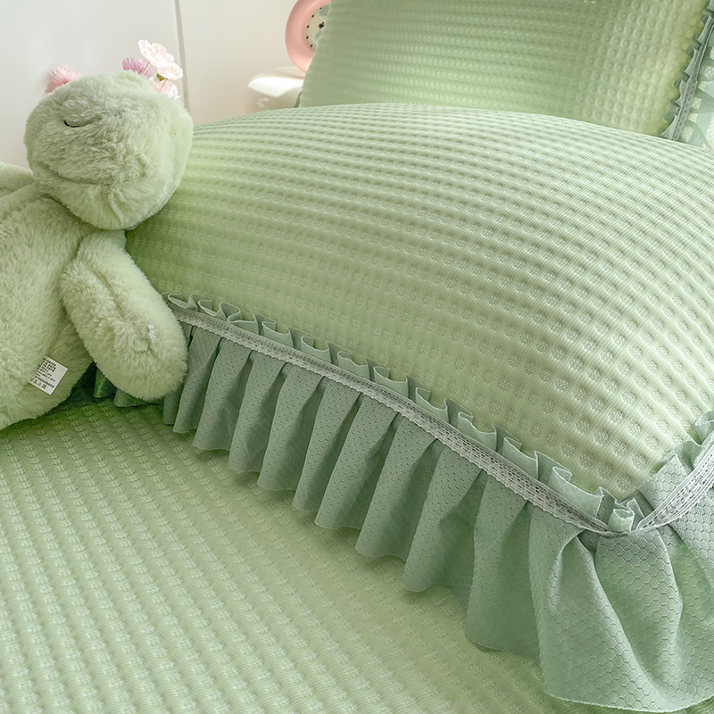 七里香 2026春夏新款2026新款华夫格3D千鸟格冰豆豆凉席床裙款三件套 华夫格-果绿,华夫格-果绿