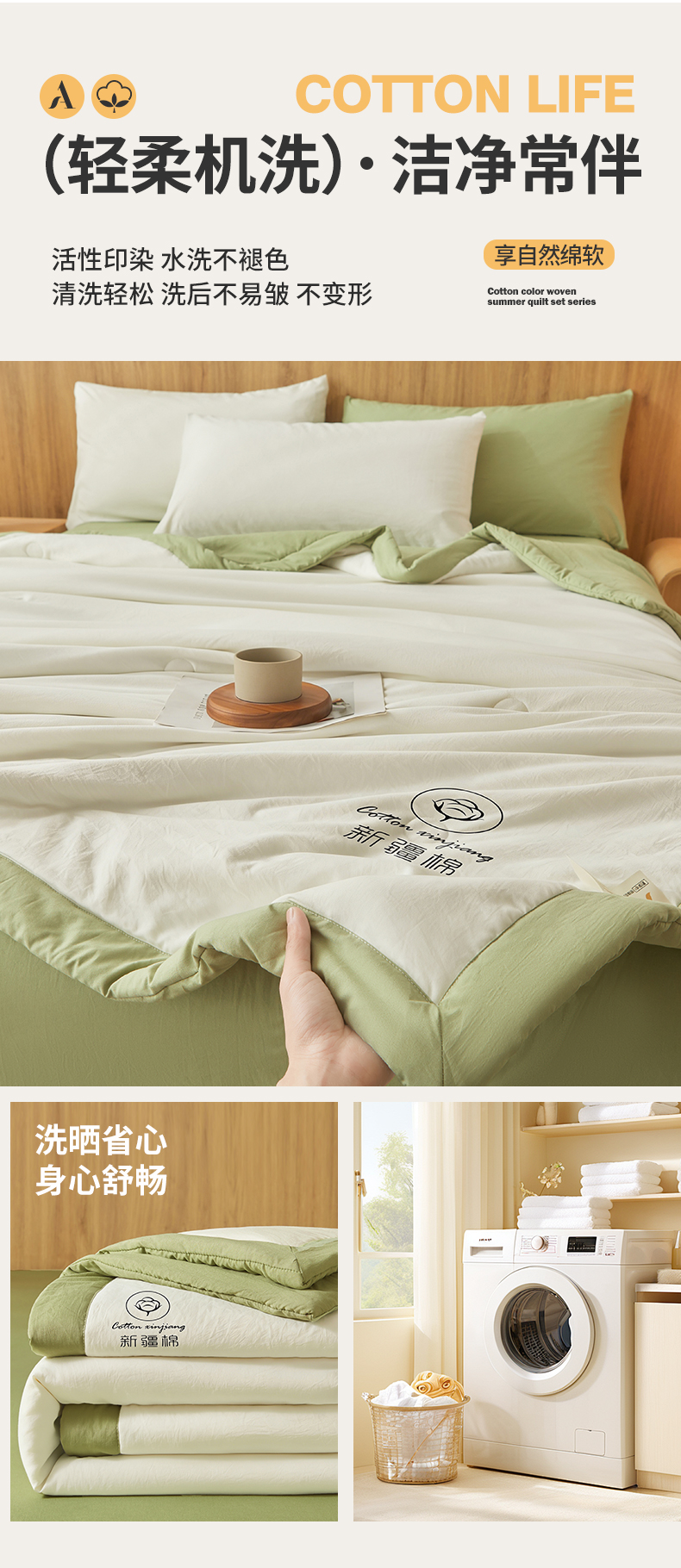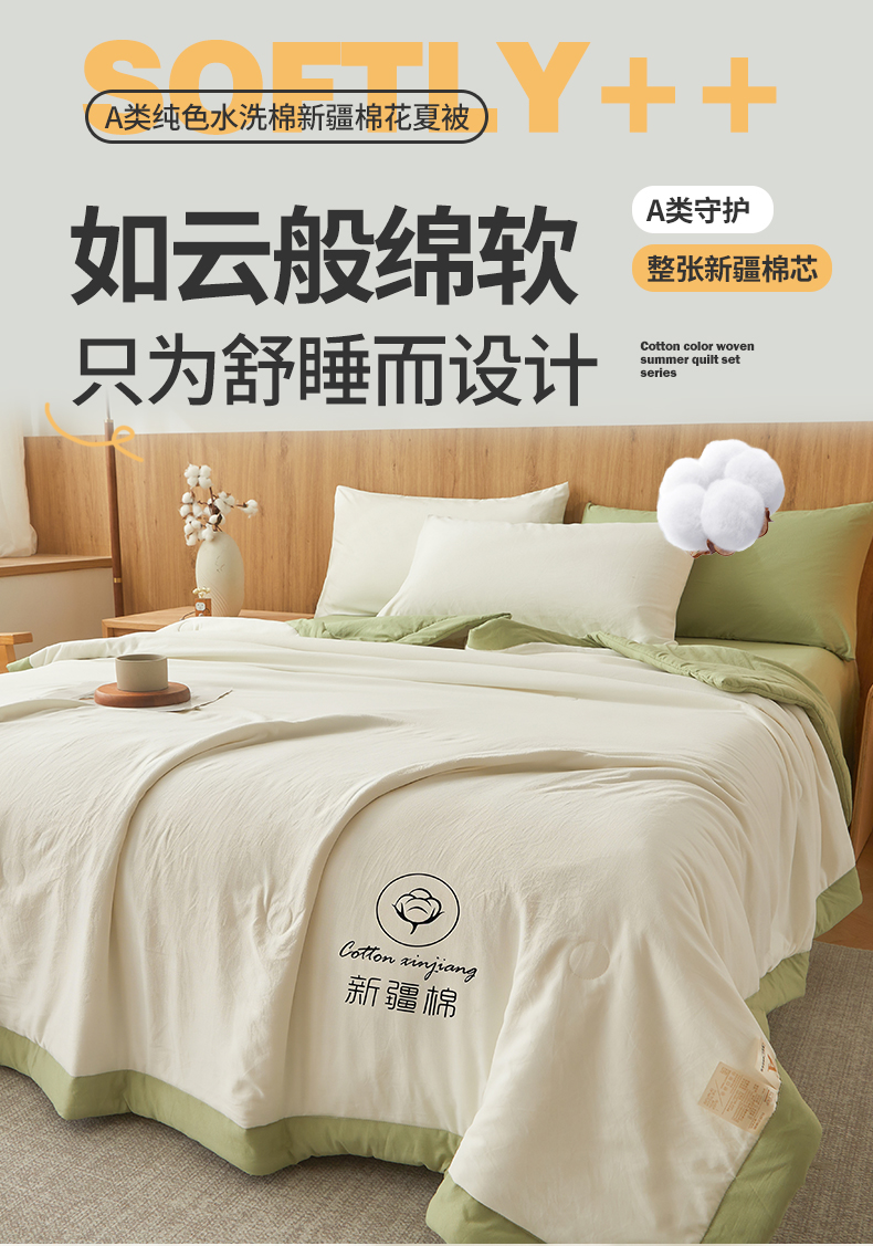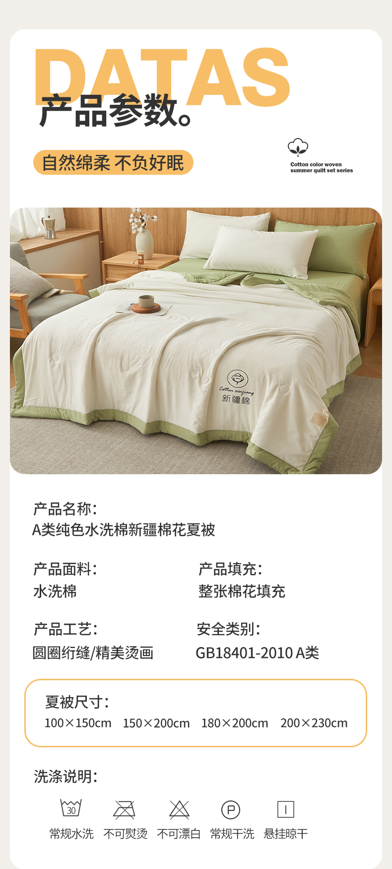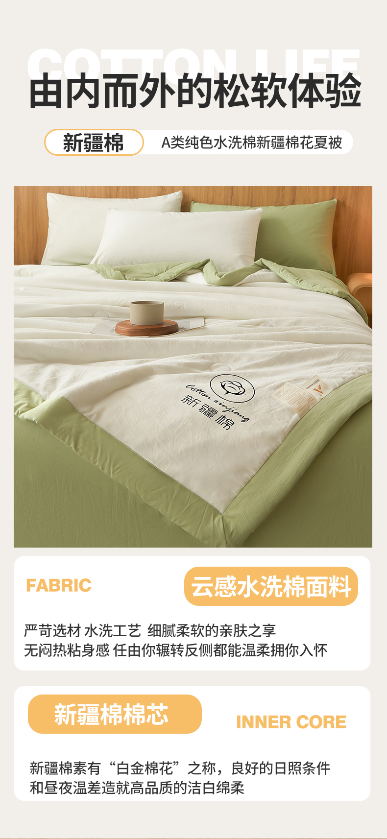 商品名称:晓时候 2026春夏新款纯色水洗棉双拼夏被新疆棉花被夏凉被空调被被子被芯-素夏 素夏-白果绿