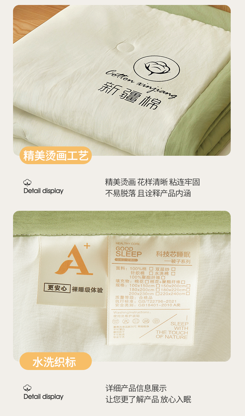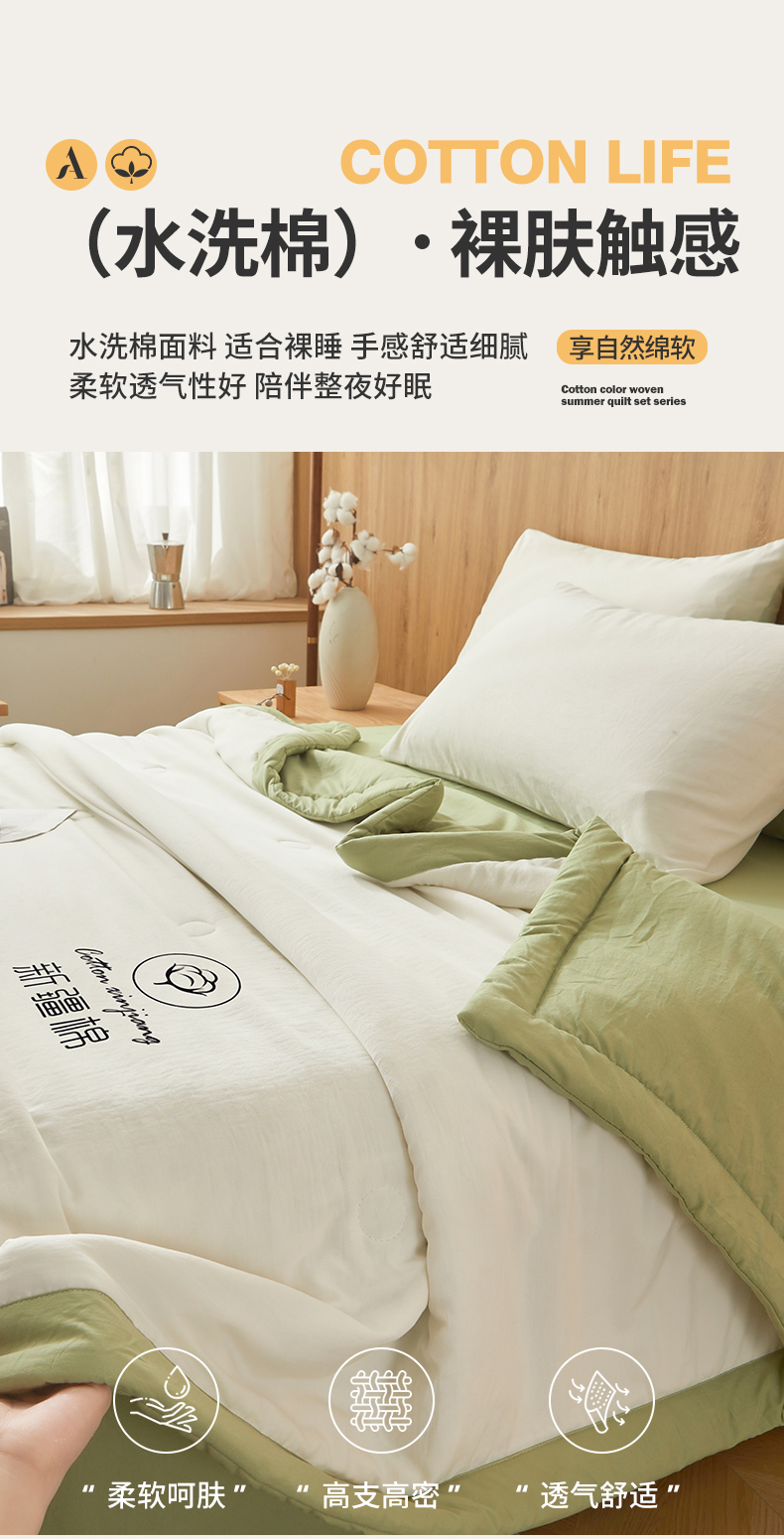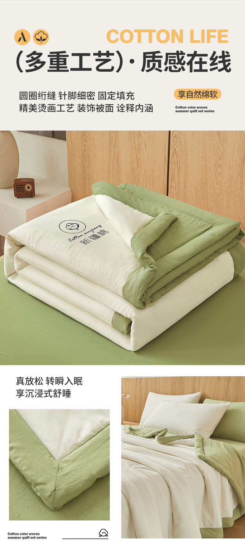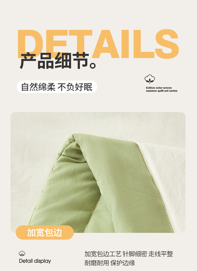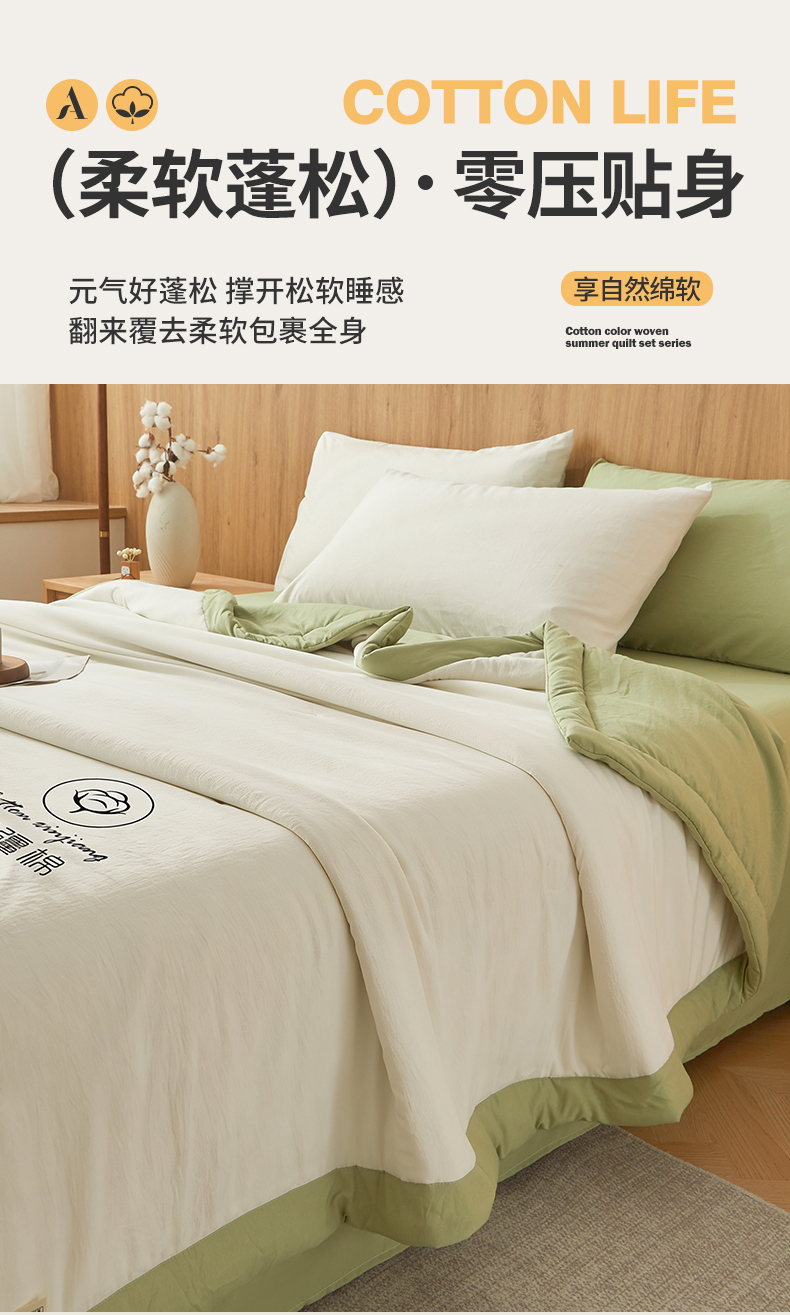 商品名称:晓时候 2026春夏新款纯色水洗棉双拼夏被新疆棉花被夏凉被空调被被子被芯-素夏 素夏-白果绿