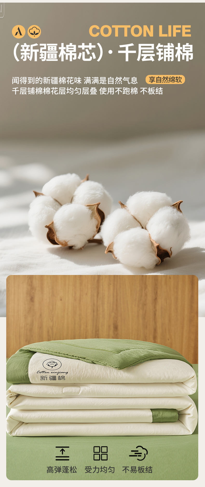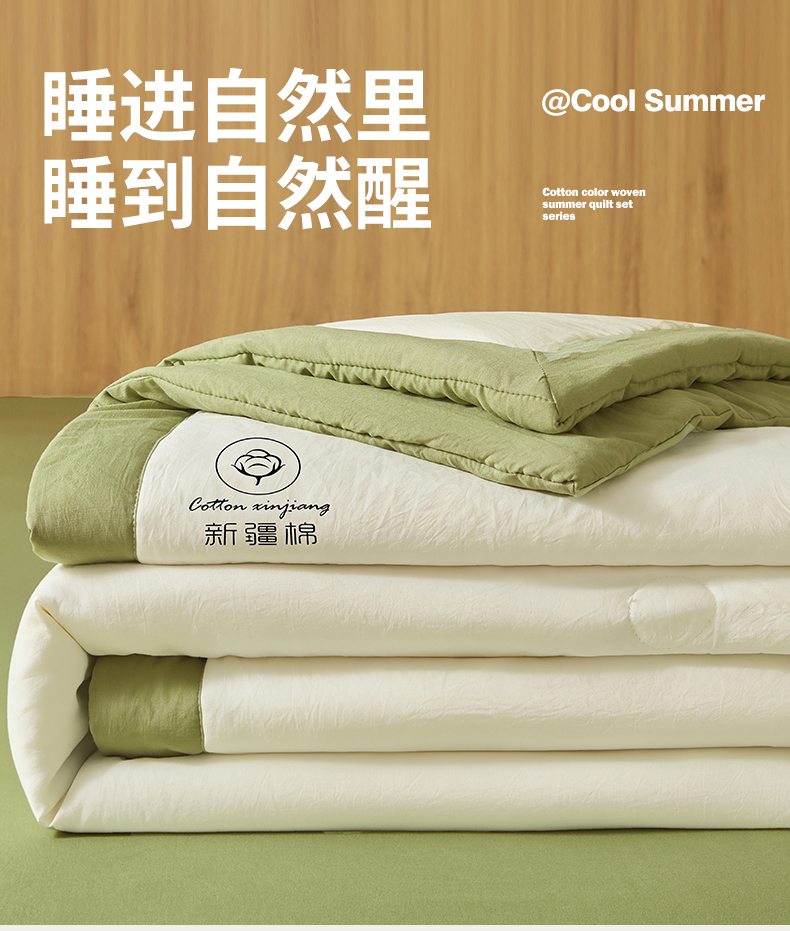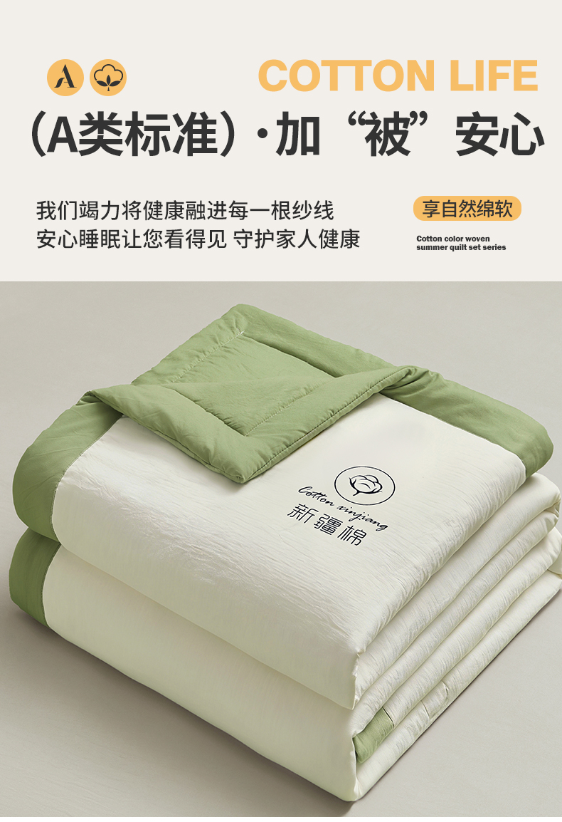 晓时候 2026春夏新款纯色水洗棉双拼夏被新疆棉花被夏凉被空调被被子被芯-素夏 素夏-白果绿