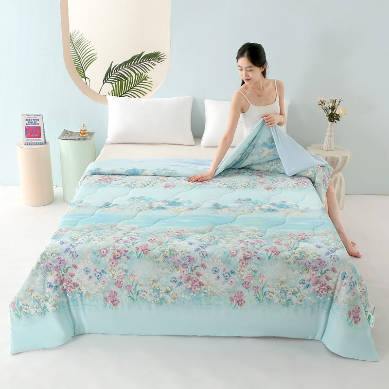 商品名称:天之悦家纺 2026新款夏被大版数码云母冰丝夏凉被空调被 宛尔流年绿