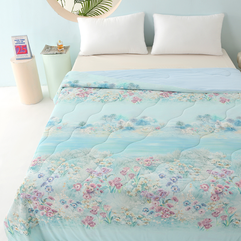 天之悦家纺 2026新款夏被大版数码云母冰丝夏凉被空调被 宛尔流年绿