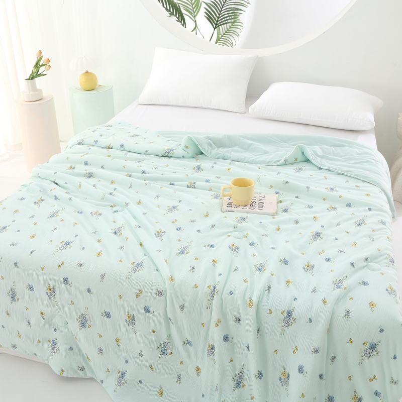 天之悦家纺 2026新款网销跨境直播热款法式小香风皱皱纱冷感被夏被夏凉被空调被 町香绿