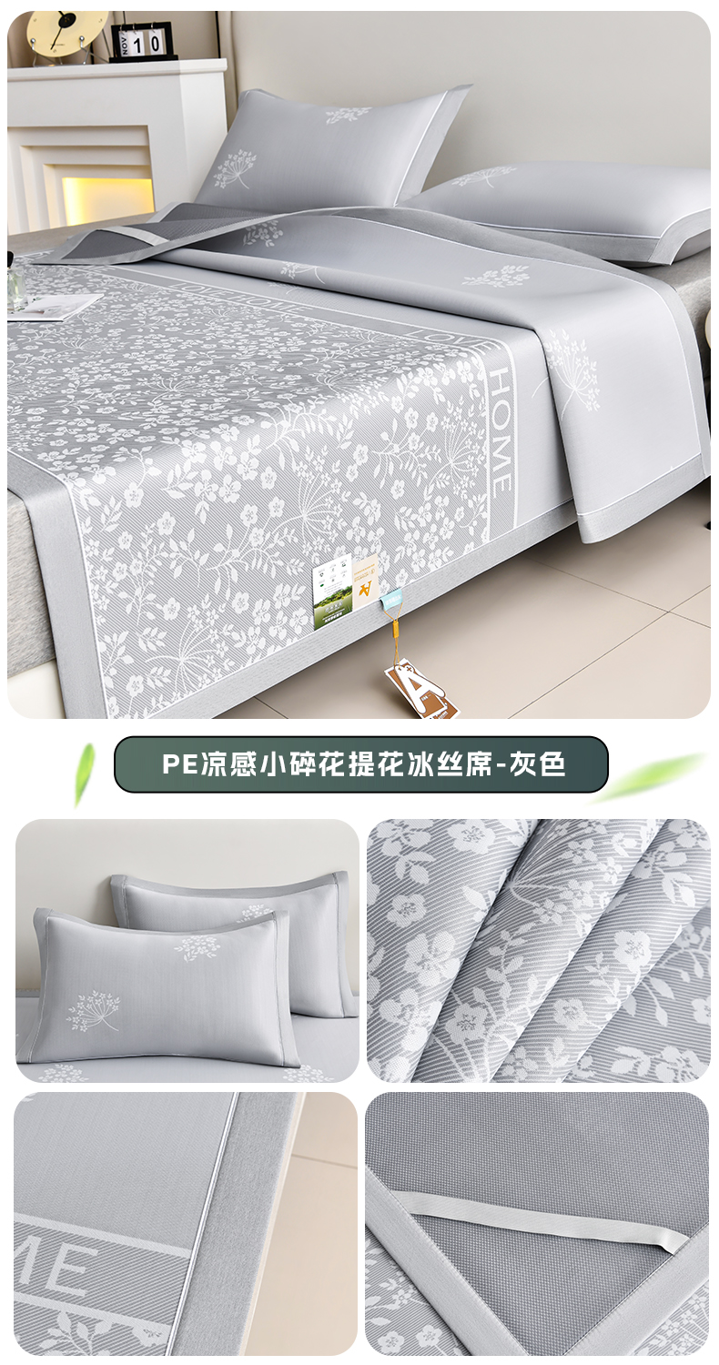 (总)小牛席业 2026春夏新款【实拍风格】PE凉感小碎花提花冰丝席,灰色,粉色,蓝色,抹茶,香槟