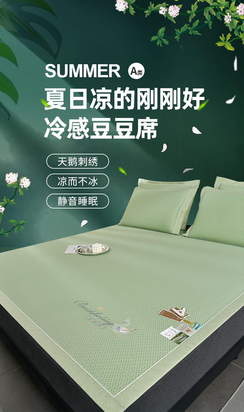 当前位置: 91家纺网 > 商品网购 > 床上用品 > 凉席 > 冰丝席 > 小牛席业 2026春夏新款天鹅刺绣冷感豆豆席凉席席子系列 天鹅刺绣冷感豆豆席(绿色)