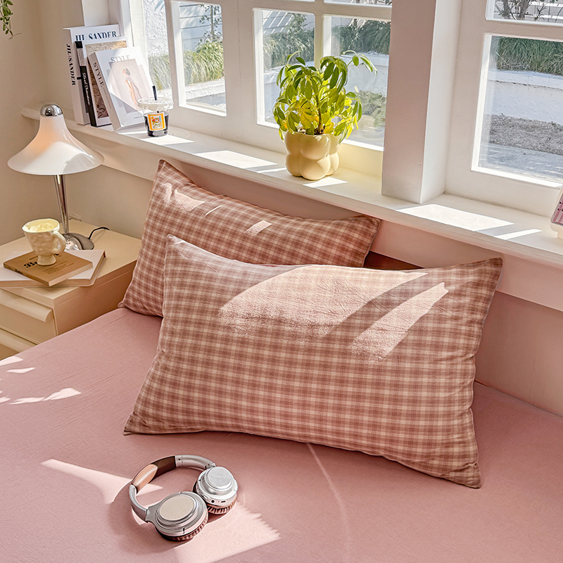 商品名称:梦依依 2026新款全棉色织水洗棉拉链款单品枕套 琥珀红