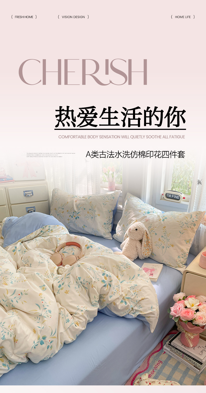 当前位置: 91家纺网 > 商品网购 > 床品套件 > 四件套 > 化纤普通四件套 > 卡斯诺家纺馆 2026新款古法水洗仿棉四件套(下载文件包含买家秀) 焦糖花影