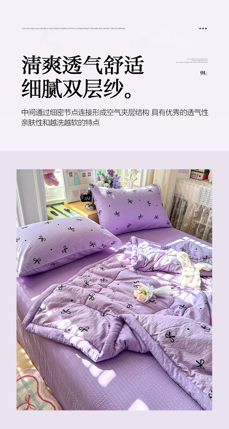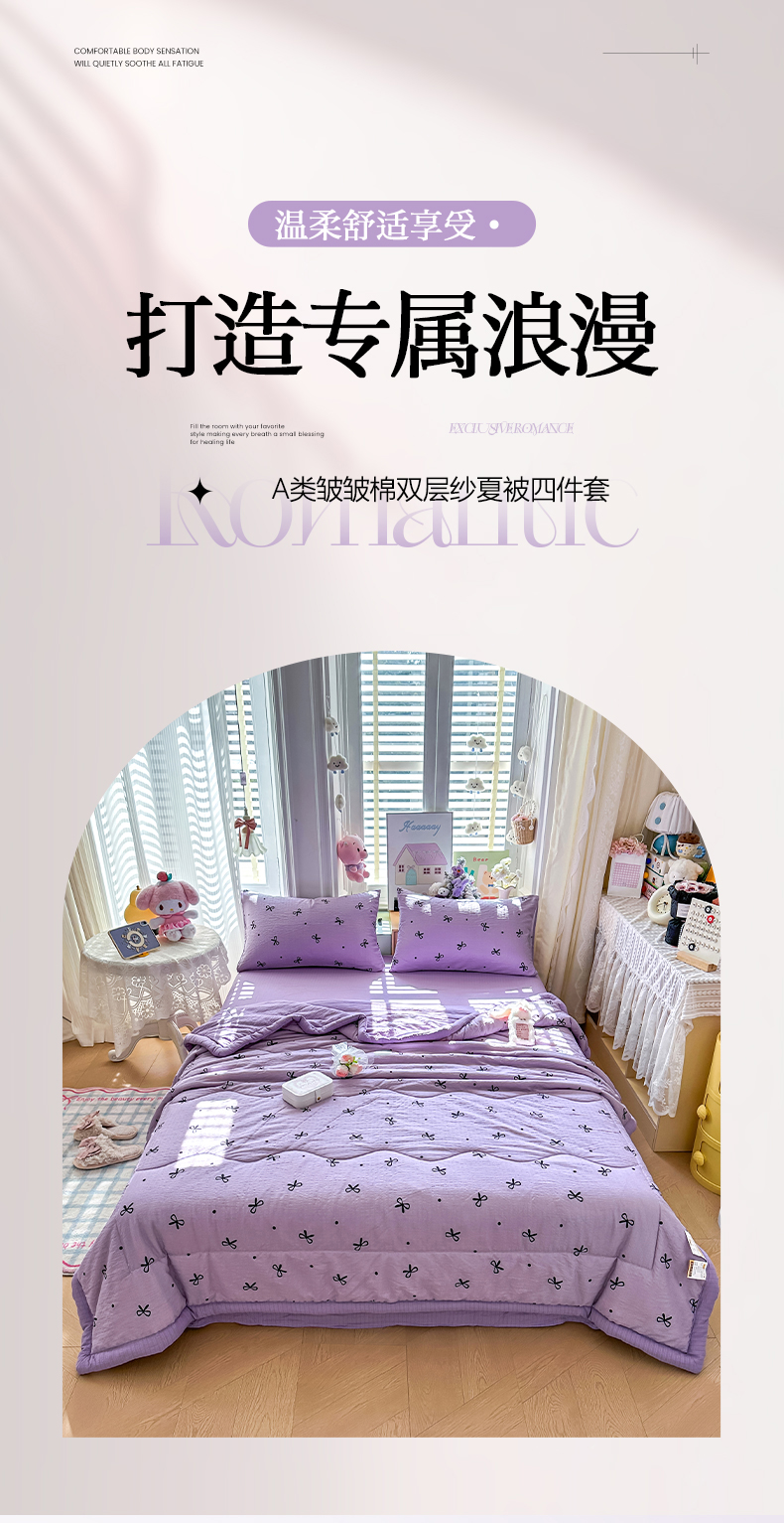 当前位置: 91家纺网 > 商品网购 > 床品套件 > 四件套 > 夏被四件套 > 卡斯诺家纺馆 2026新款皱皱棉双层纱夏被四件套下载文件包含买家秀 紫苏